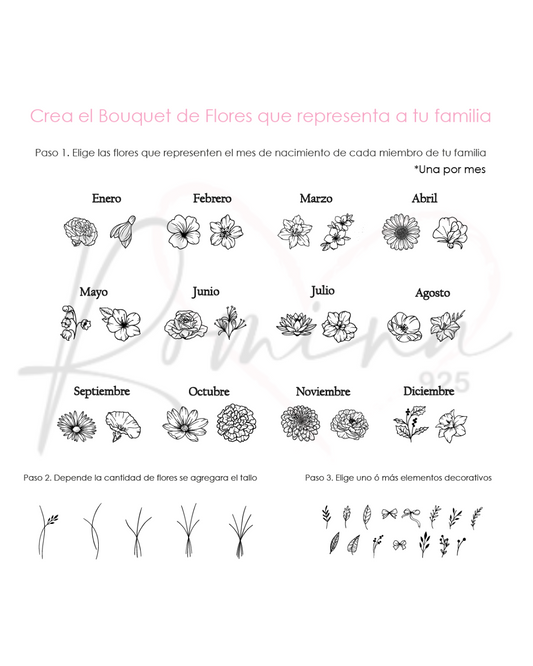 Anillo Flores Familia Personalizado Plata .925 - Flores de Nacimiento