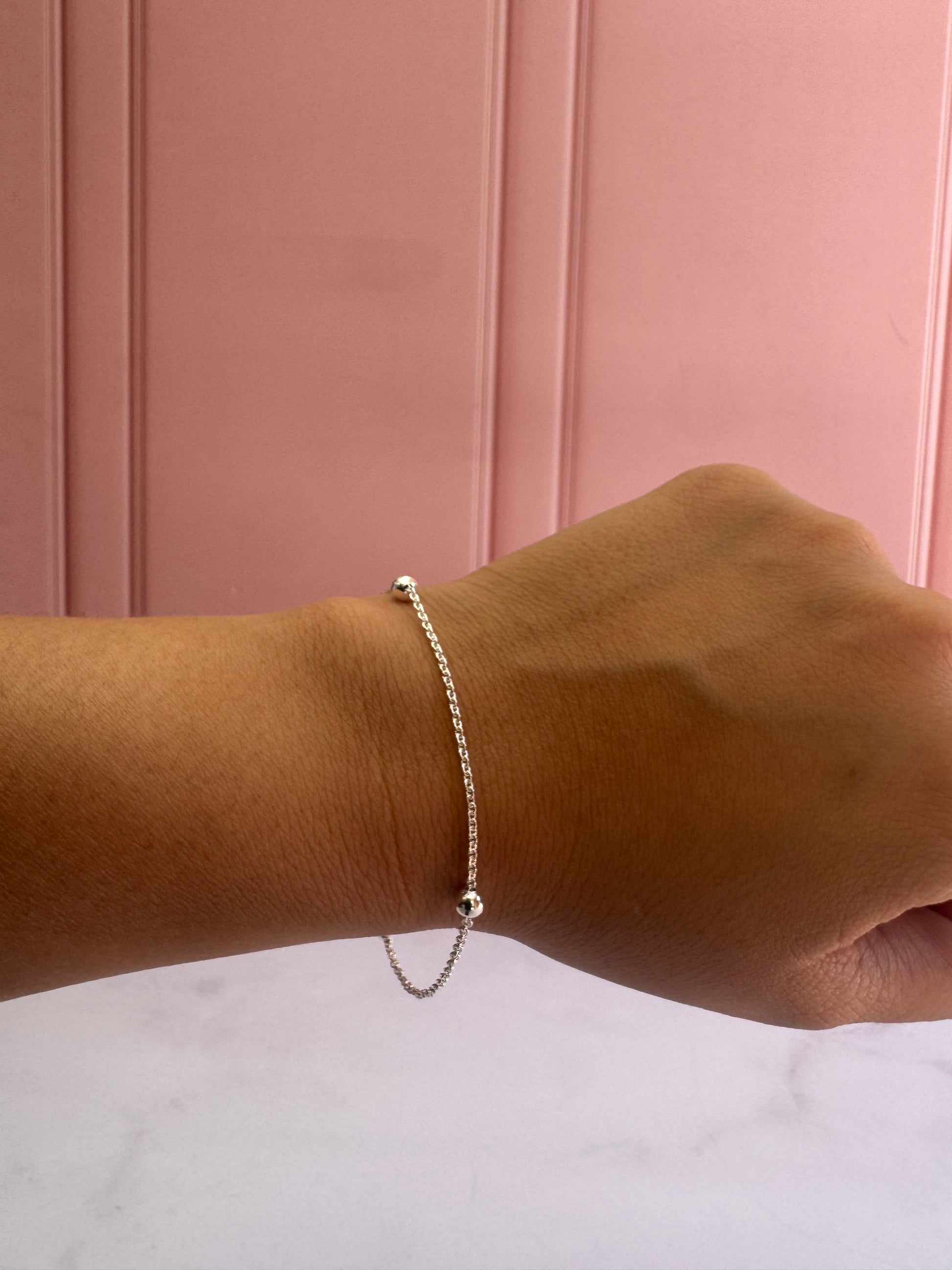 Un diseño elegante que combina eslabones tipo ancla con bolitas, creando un estilo sofisticado y lleno de personalidad.