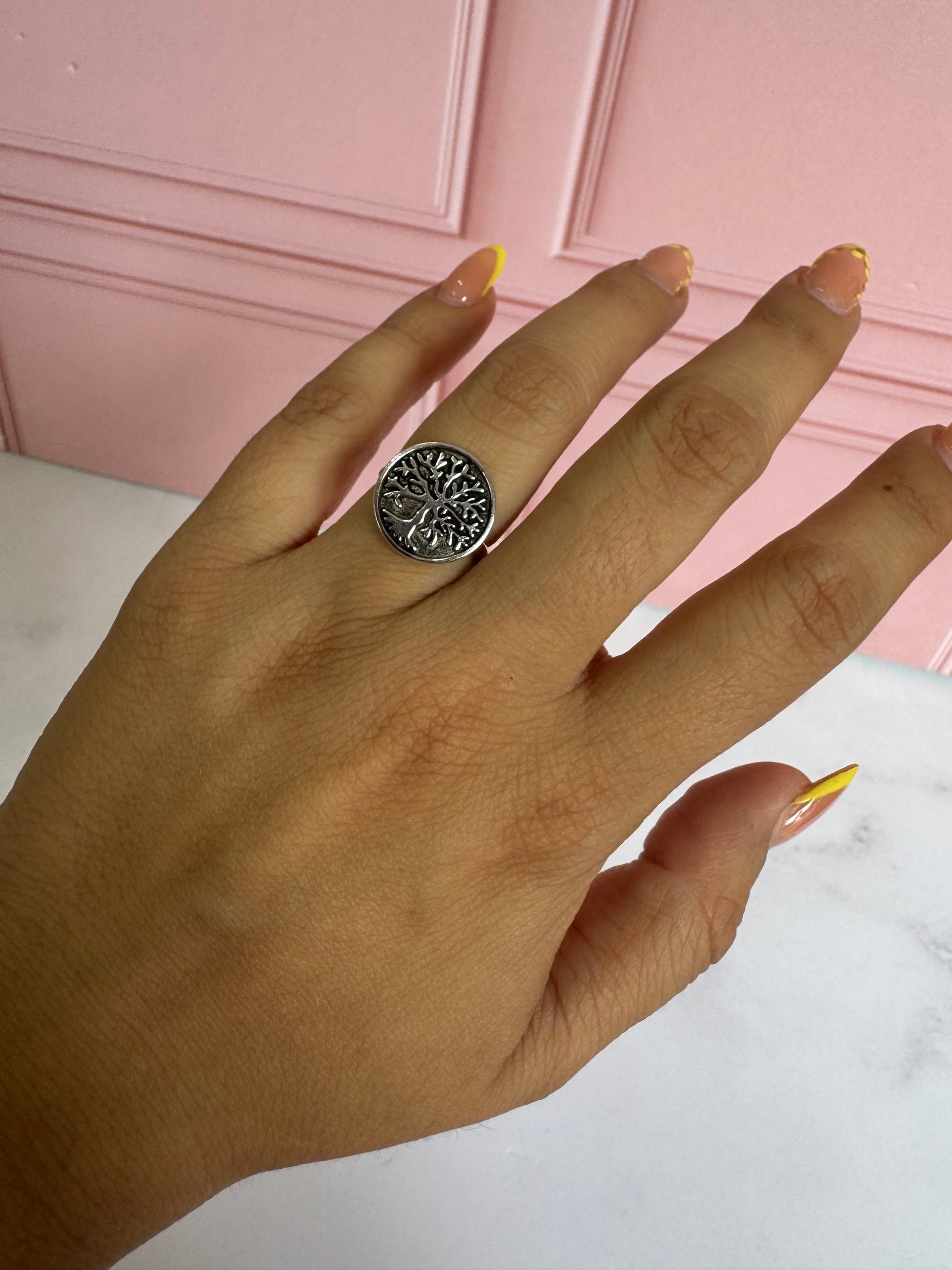 Un anillo significativo con diseño del Árbol de la Vida grande y acabado oxidado. Perfecto para quienes buscan un símbolo poderoso de conexión y crecimiento.