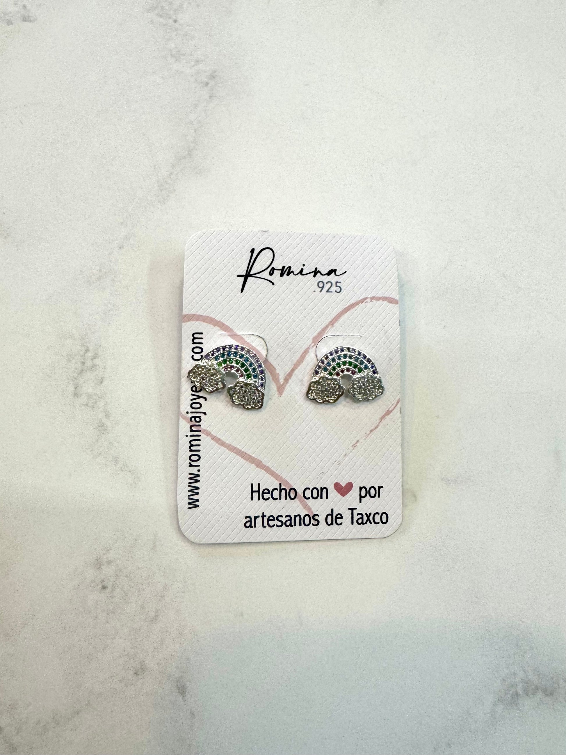 Aretes Arcoíris en Plata .925 con Zirconias Multicolor 🌈✨