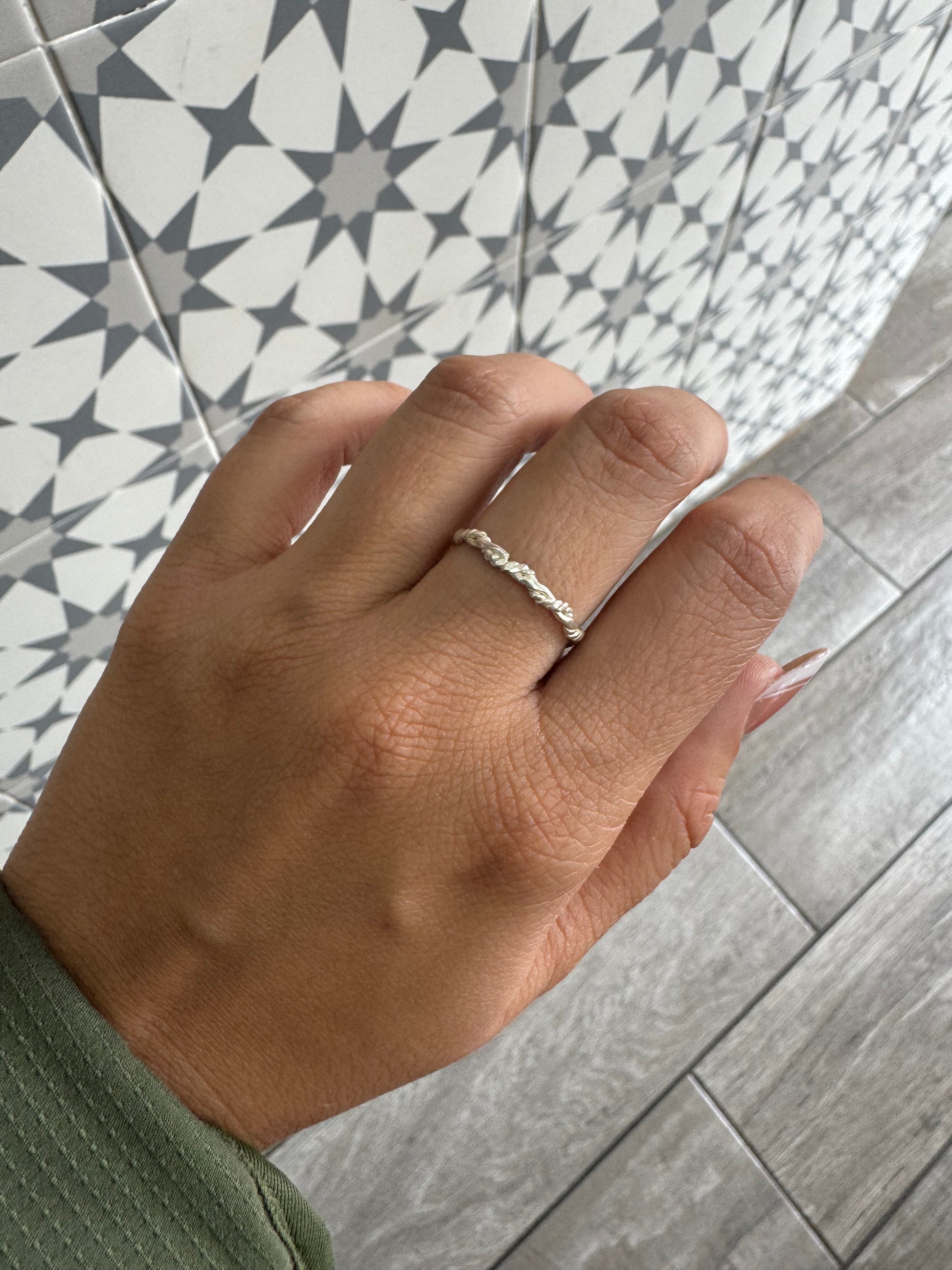 Un anillo delicado tipo argolla delgada con diseño mixto. Perfecto para quienes buscan delicadeza con estilo versátil.