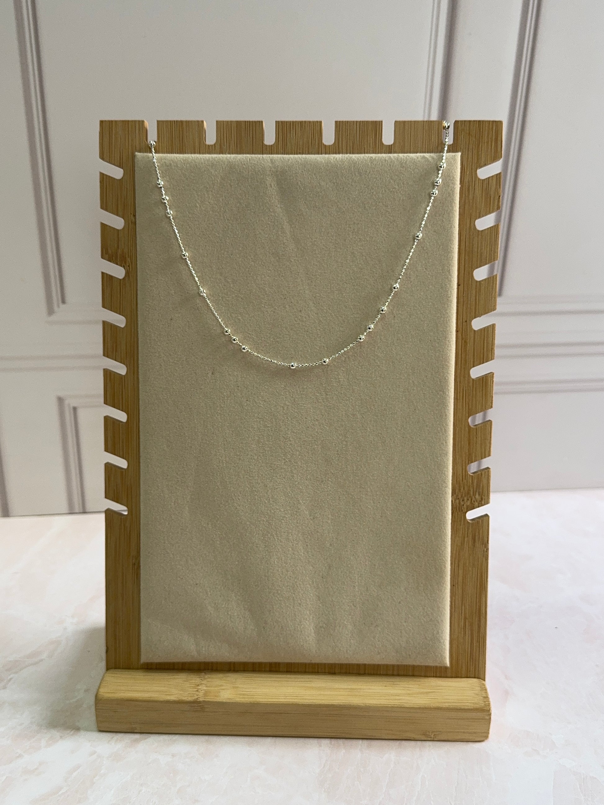 Una cadena elegante con diseño de bolitas múltiples que crea un efecto visual interesante y lleno de brillo. Perfecta para quienes buscan versatilidad.