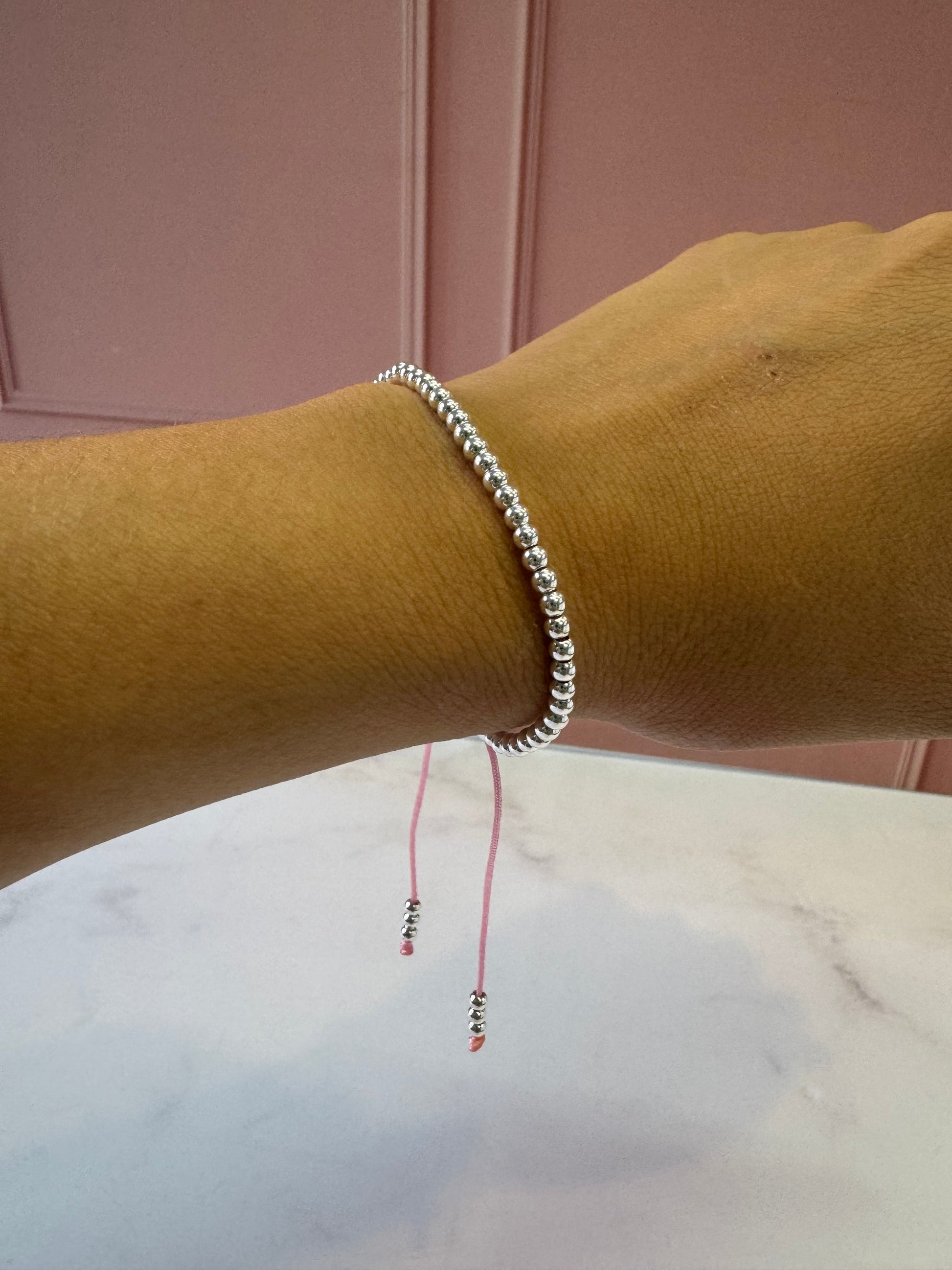 Pulsera Tejida Bolitas Rosa en Plata .925 con Hilo Chino 💗✨