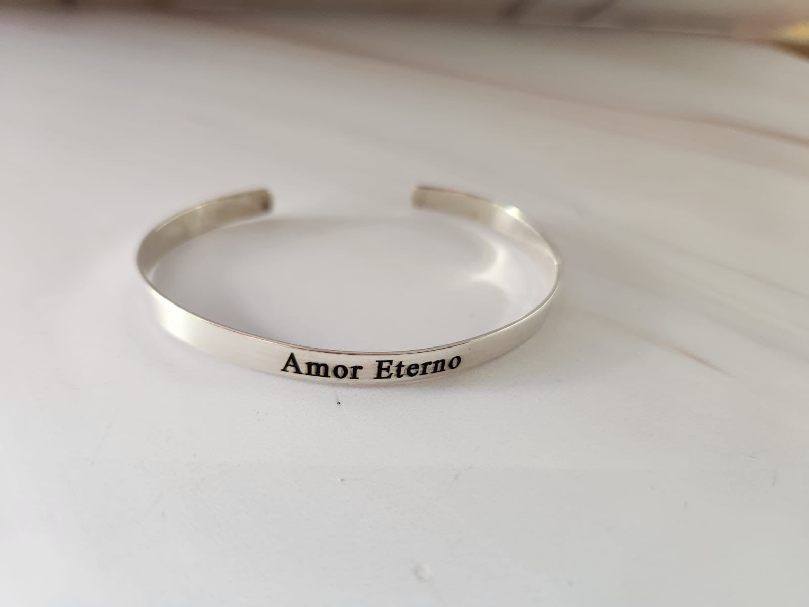 Un brazalete elegante de 5mm de ancho personalizable con tu mensaje especial. Perfecto para quienes buscan una joya significativa y única.