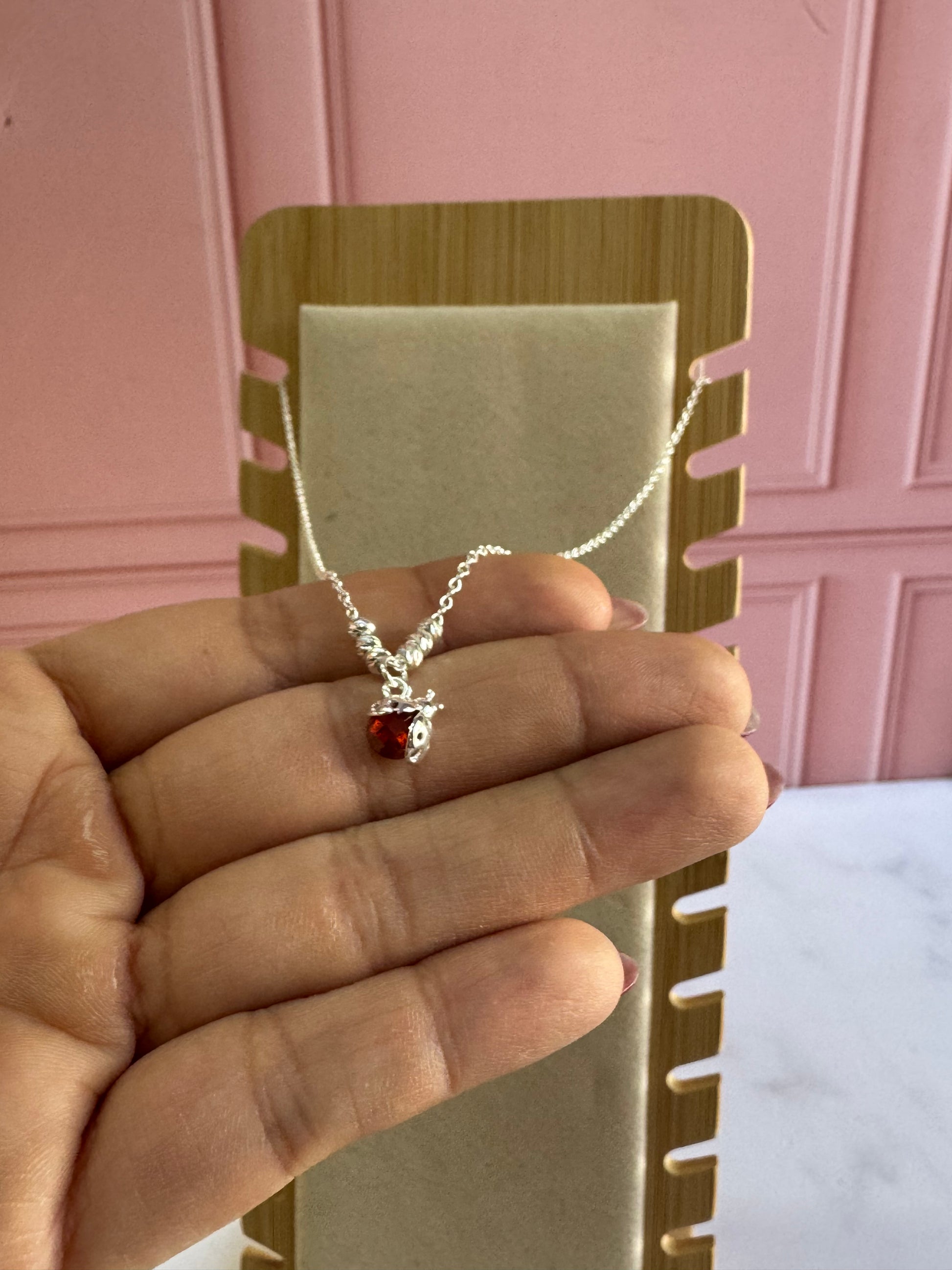 Descubre la magia de la buena fortuna en este collar catarina con zirconia de plata .925, diseñado para simbolizar buena suerte, protección, alegría y la capacidad de atraer energía positiva a tu vida.