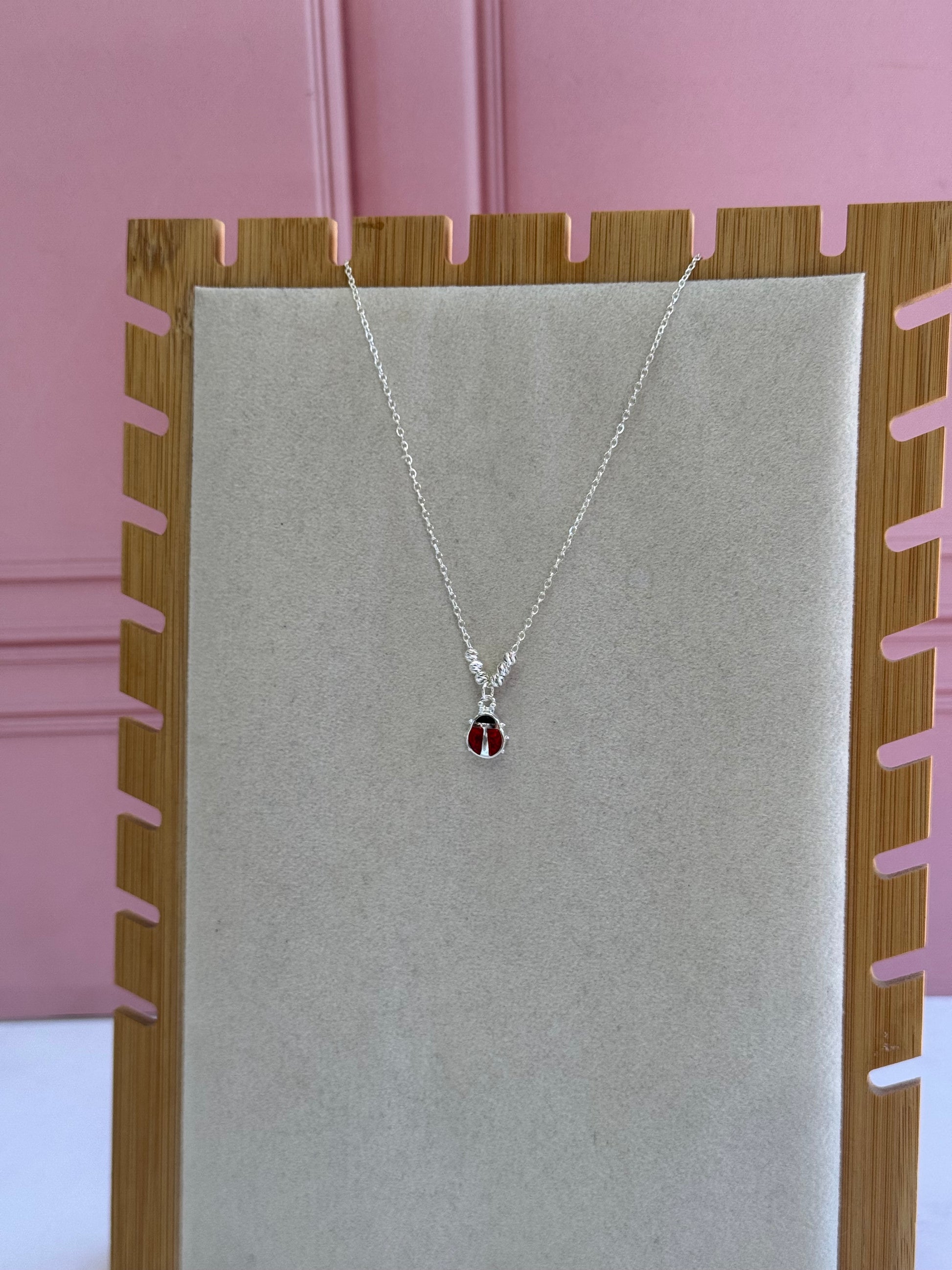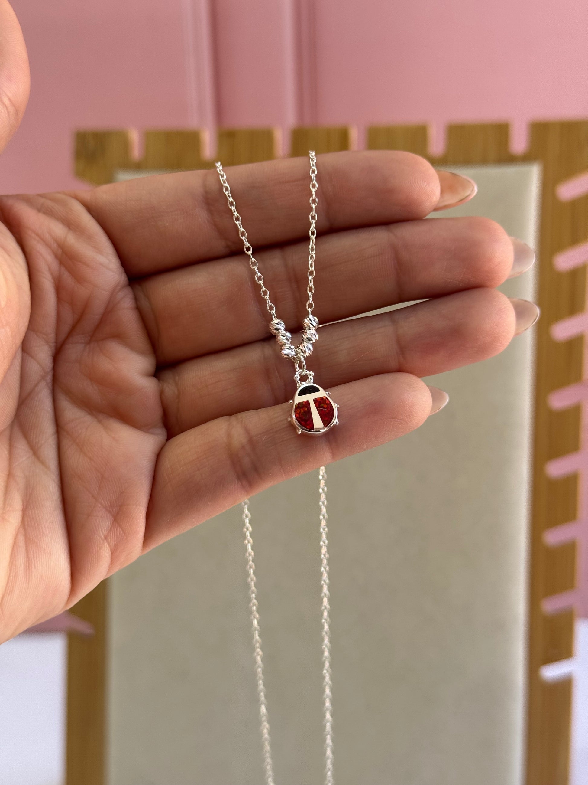 Un collar encantador que combina la suerte de la catarina con la magia del ópalo. Esta mariquita en plata .925 con ópalo natural representa buena fortuna, protección y alegría colorida.