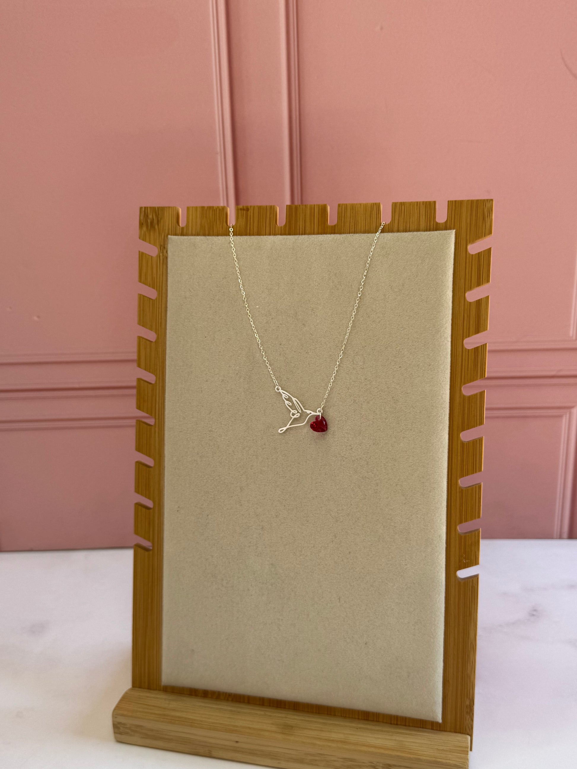 Un collar que celebra el amor ligero y lleno de vida. Este colibrí con corazón en plata .925 con cristal representa amor alegre, libertad y la capacidad de encontrar dulzura en cada momento.