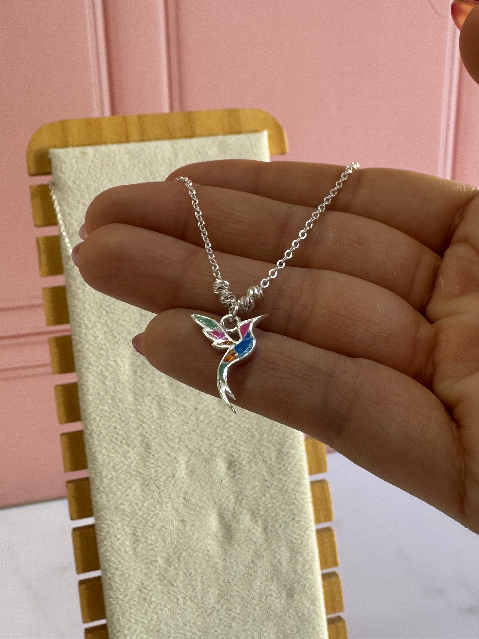 Collar Colibrí en Vuelo Opalina de Plata .925 - Libertad en Movimiento