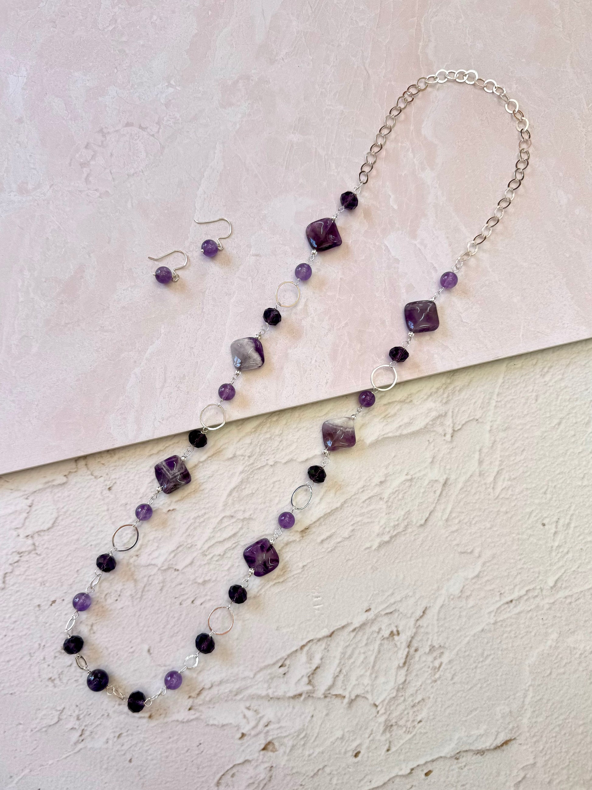 Collar Largo Amatista en Plata .925 con Piedras Naturales 💜✨