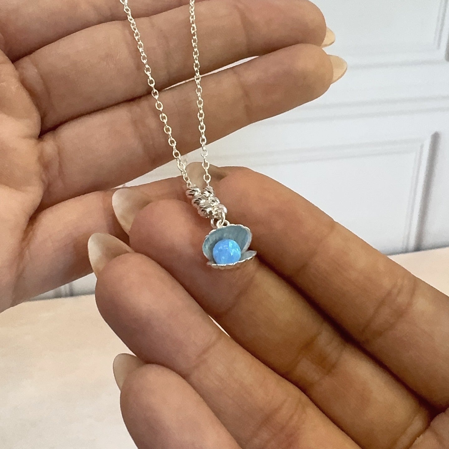 Collar de Conchita en plata .925 con opalina color azul