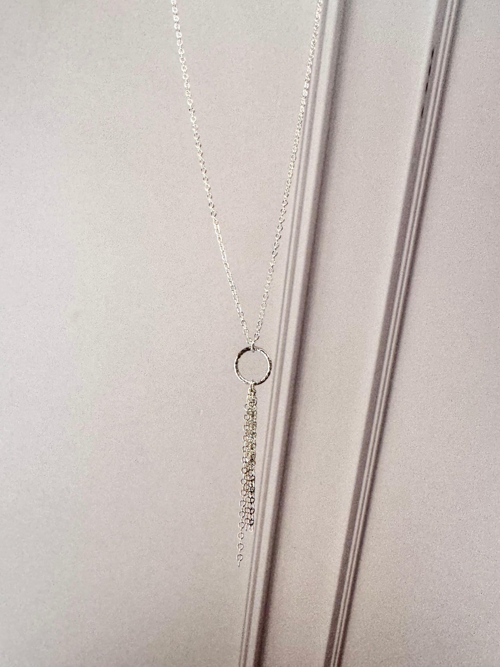 Un collar corbatero elegante con diseño de círculo y cadenas. Perfecto para quienes buscan un estilo minimalista y sofisticado.