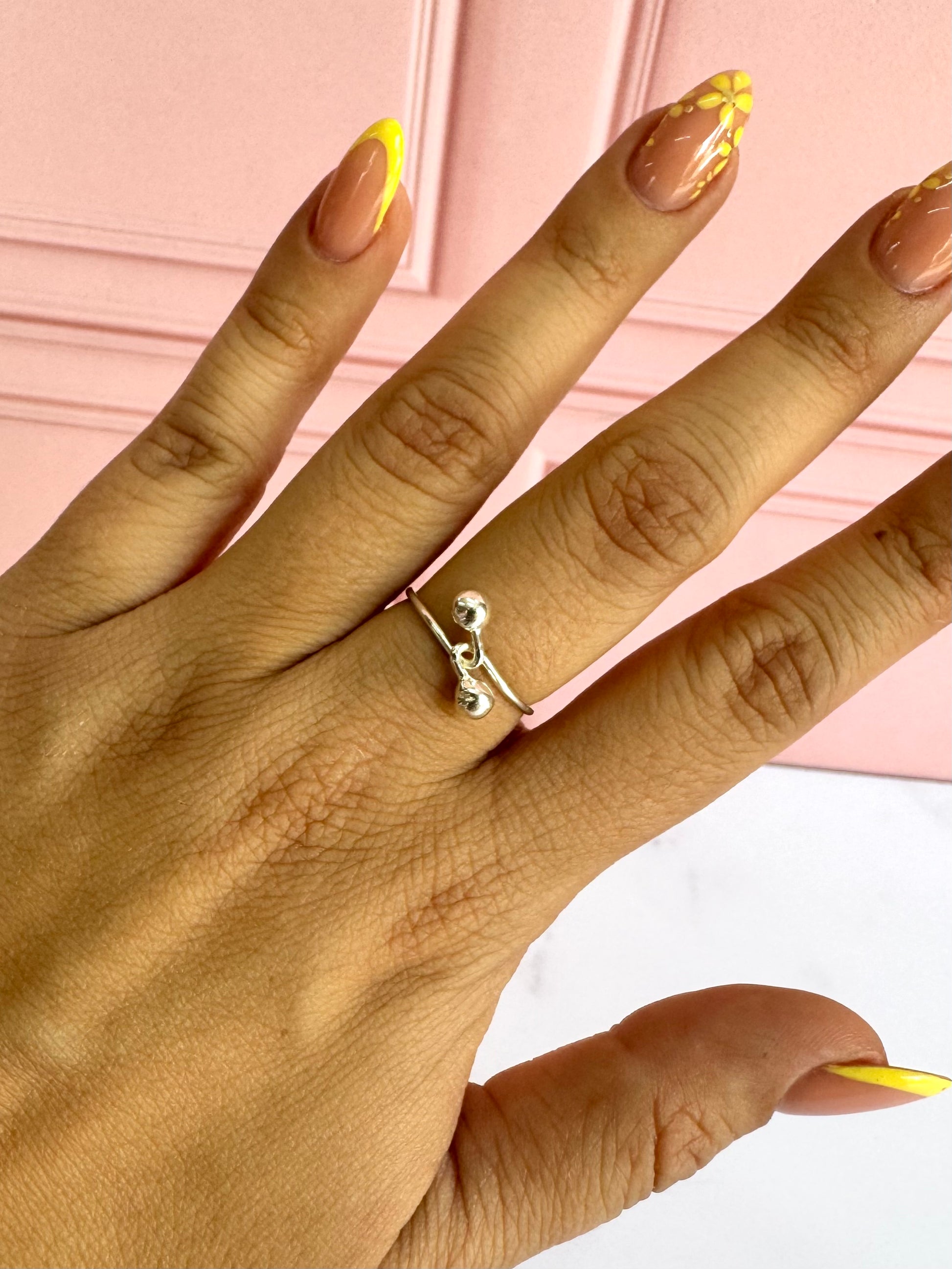 Un anillo delicado con diseño de doble bolita con twist. Perfecto para quienes buscan un estilo sencillo con movimiento.