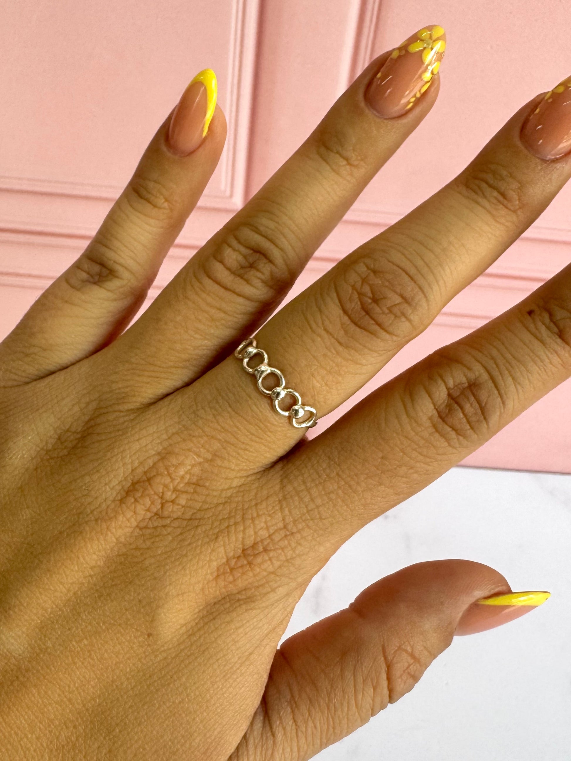 Un anillo único con diseño de círculos en doble vista. Perfecto para quienes buscan un símbolo de eternidad con perspectiva dual.