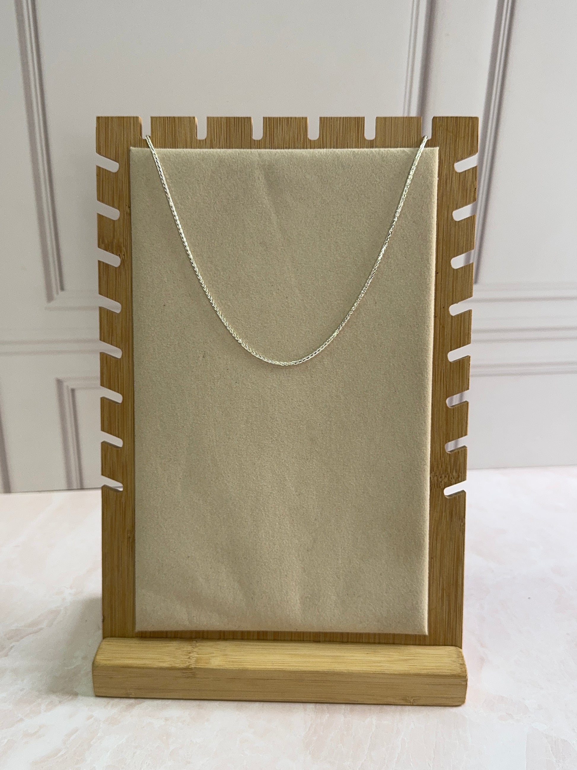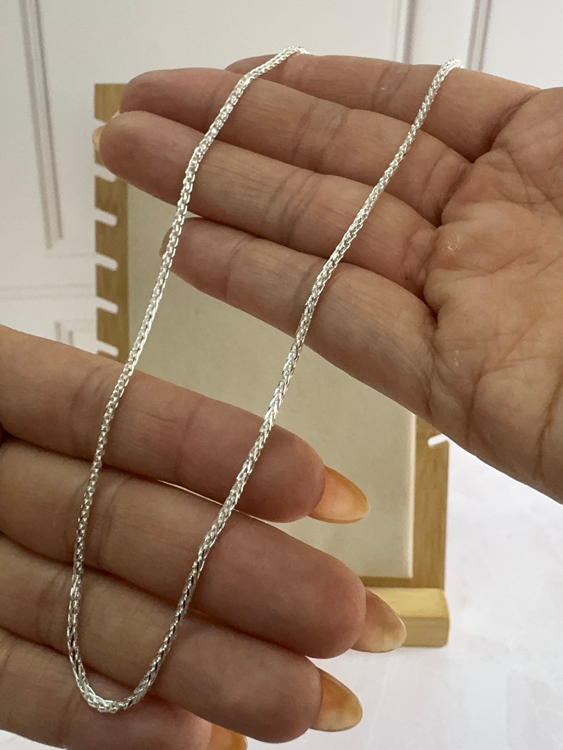 Una cadena elegante con patrón de espiga que crea un efecto visual sofisticado y lleno de textura. Perfecta para quienes buscan un estilo único y moderno.