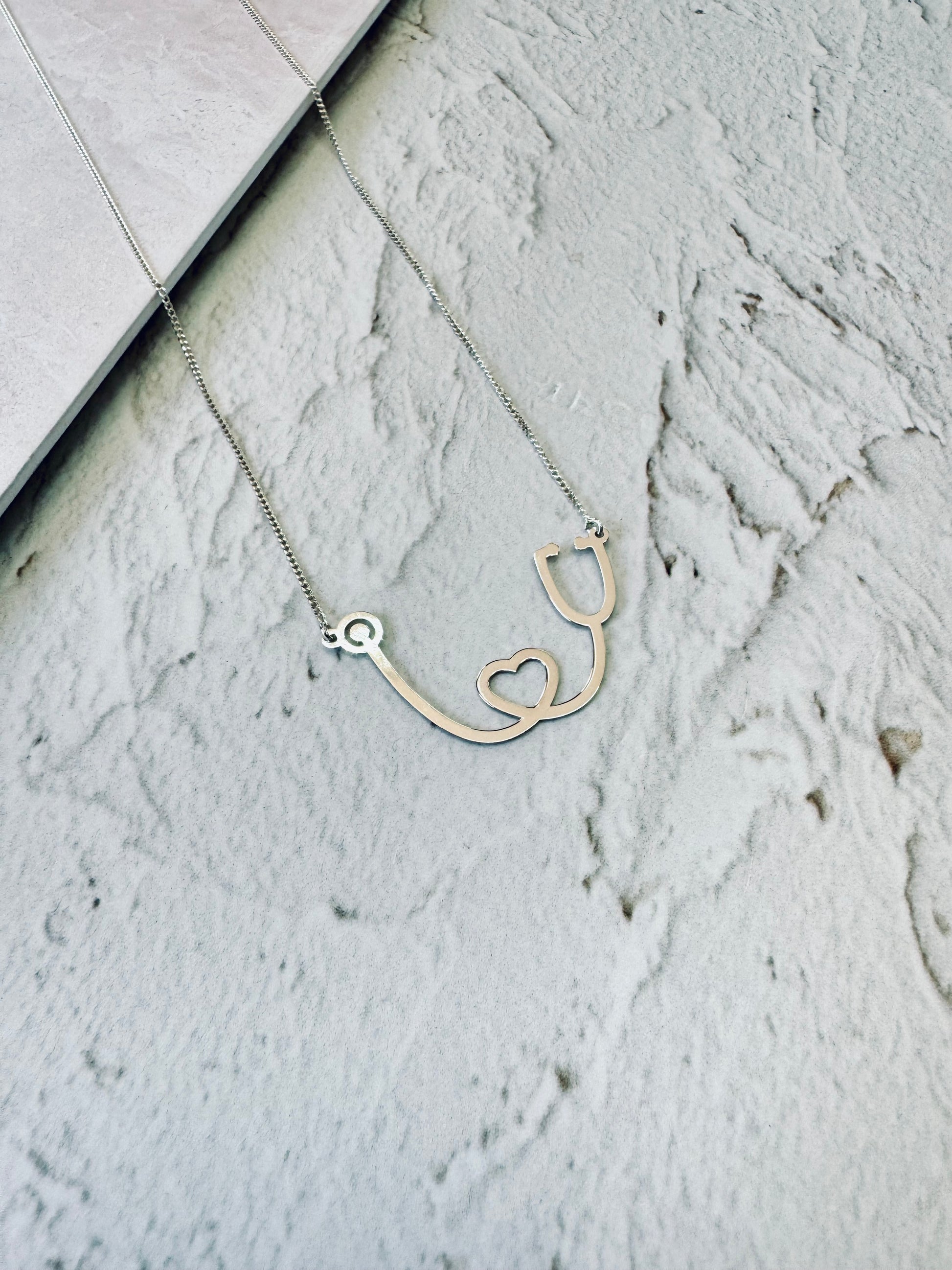 Un collar único con diseño de estetoscopio y doble argolla. Perfecto para profesionales de la salud que quieren llevar su vocación con estilo.