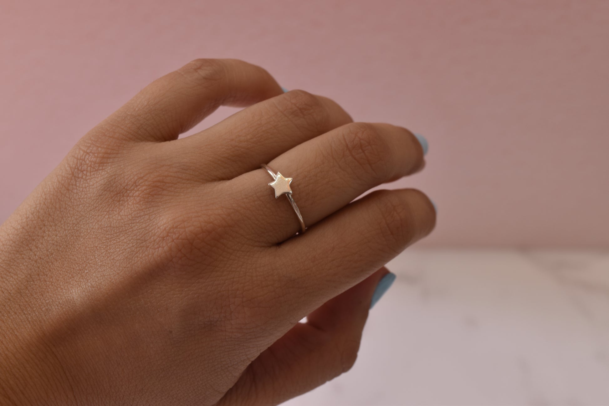 Un anillo mágico con diseño de estrella lisa. Perfecto para quienes buscan brillar con luz propia y alcanzar sus sueños.