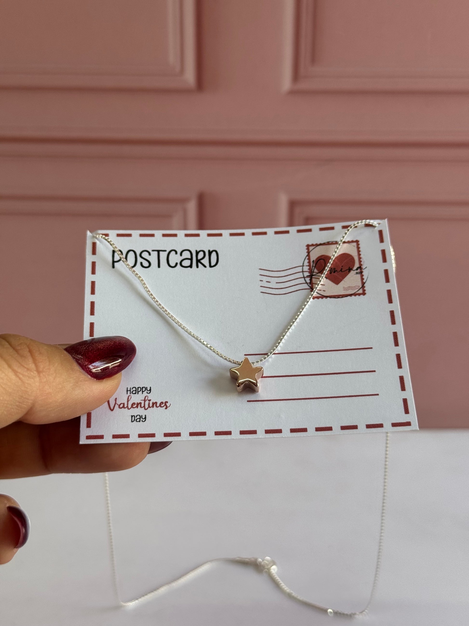 Un collar elegante con estrella en plata .925 con baño de oro rosa. Perfecto para quienes buscan brillar con luz propia con un toque dorado especial.