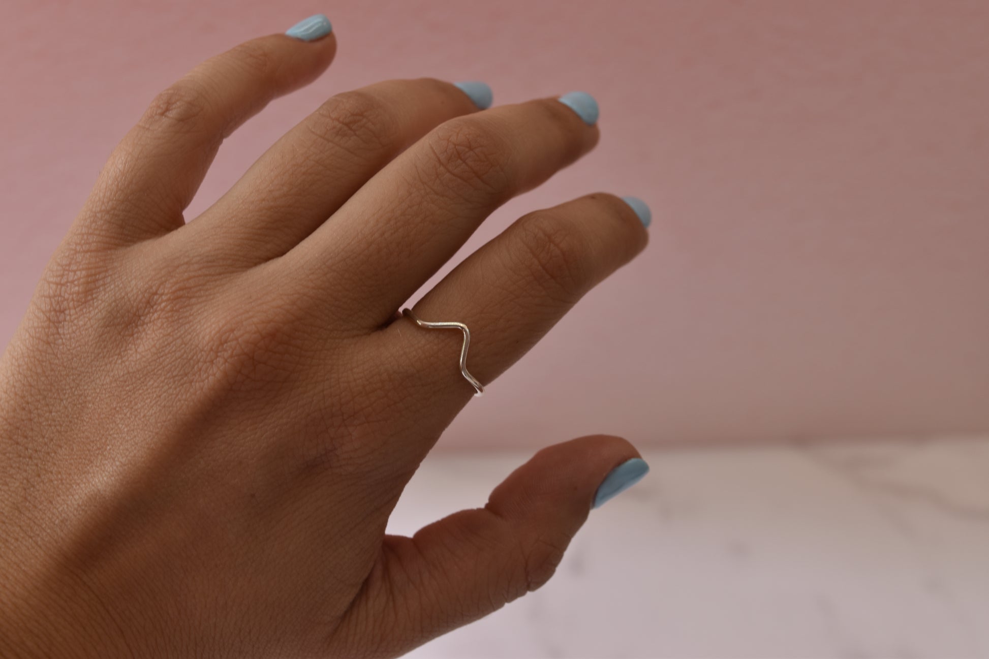 El diseño en V es elegante y alarga visualmente los dedos. El detalle redondo le da un toque especial y moderno.