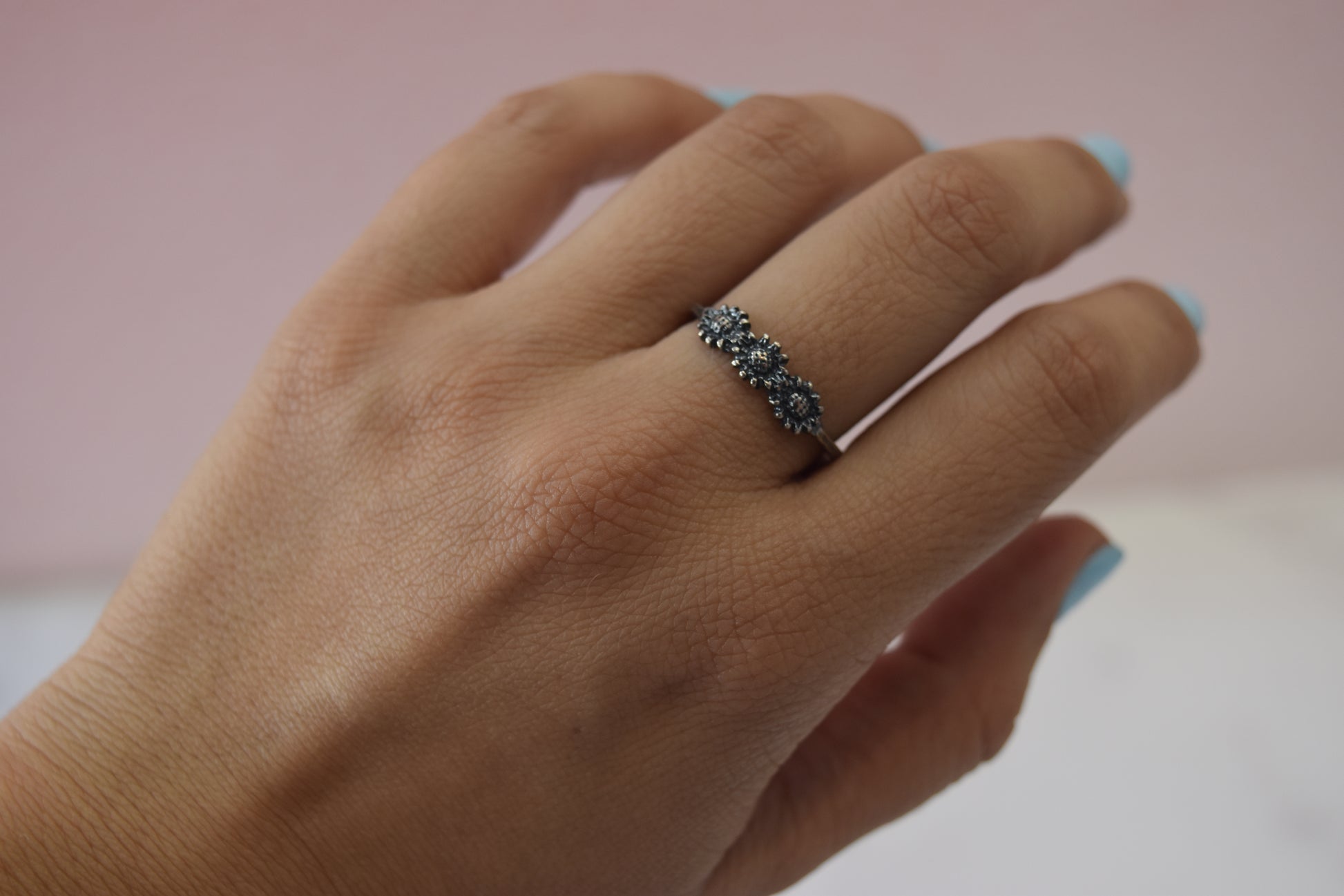 Un anillo encantador con diseño de múltiples girasoles y acabado oxidado. Perfecto para quienes aman la alegría multiplicada con estilo vintage.