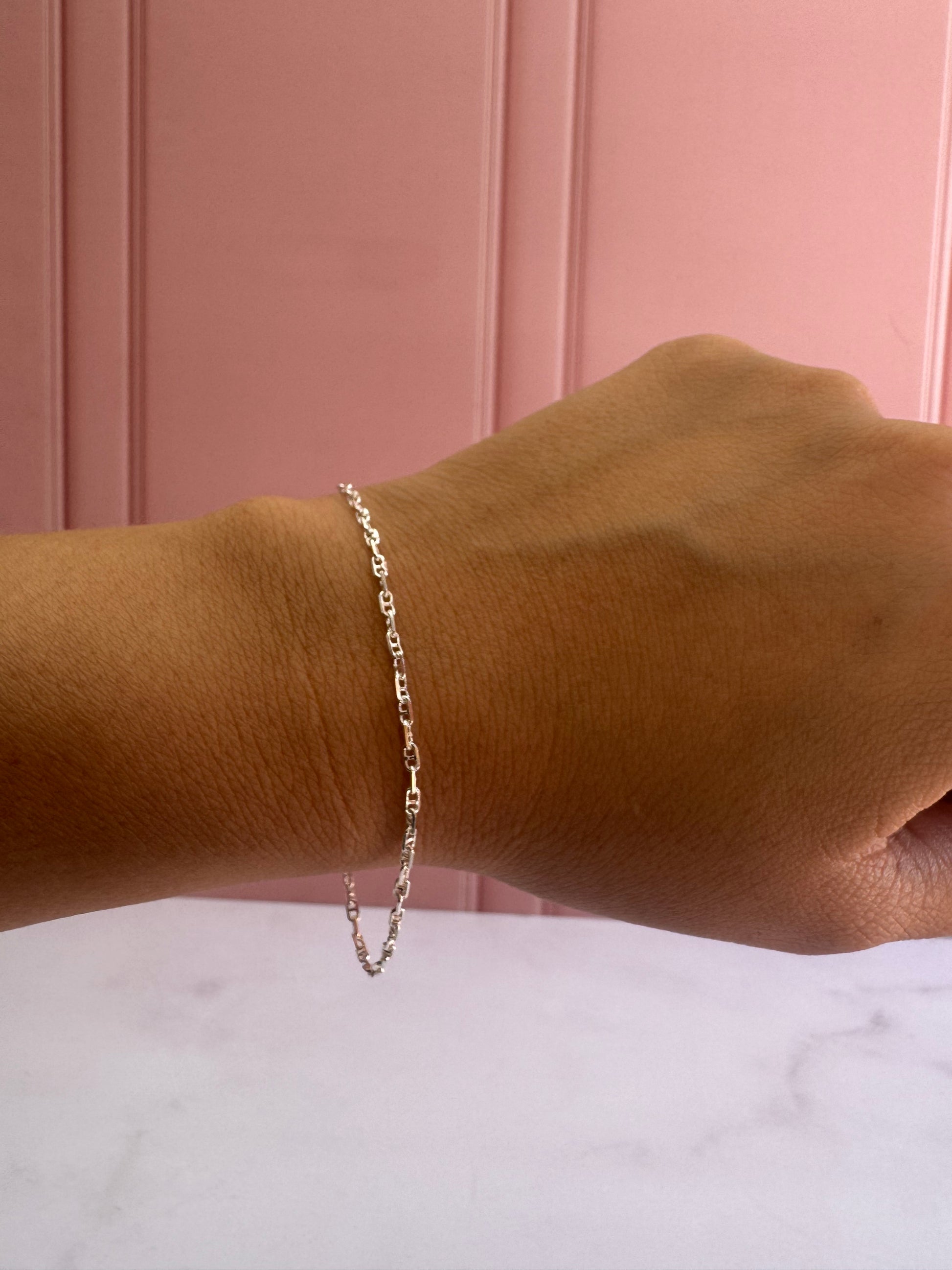 Un diseño elegante estilo Gucci con eslabones tubulares mini que crean un look sofisticado y moderno. Perfecta para quienes buscan lujo en versión delicada.