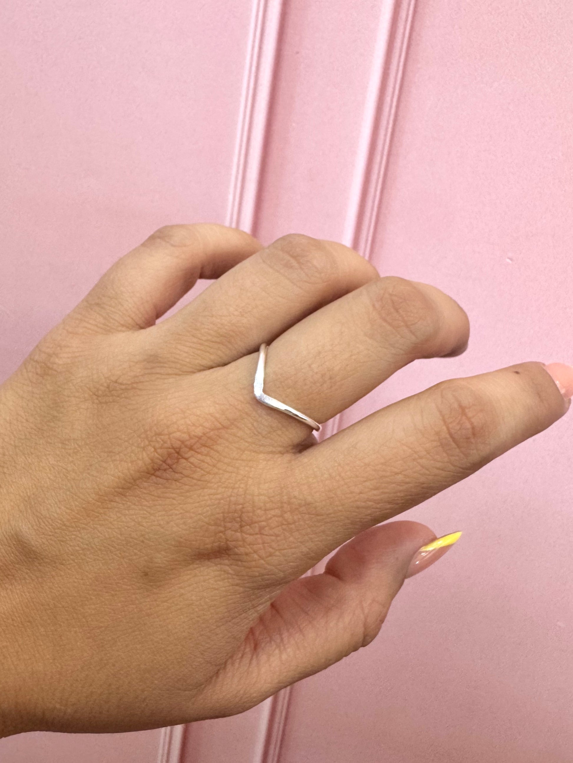 Un anillo minimalista con diseño liso en forma de V. Perfecto para quienes buscan un estilo geométrico elegante y moderno.