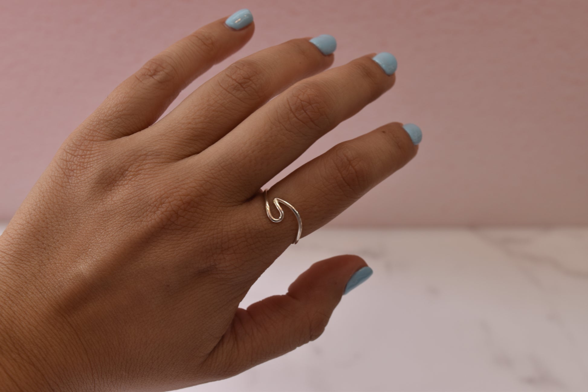 Un anillo fluido con diseño de ola que evoca el movimiento del mar. Perfecto para amantes del océano y el estilo fluido natural.