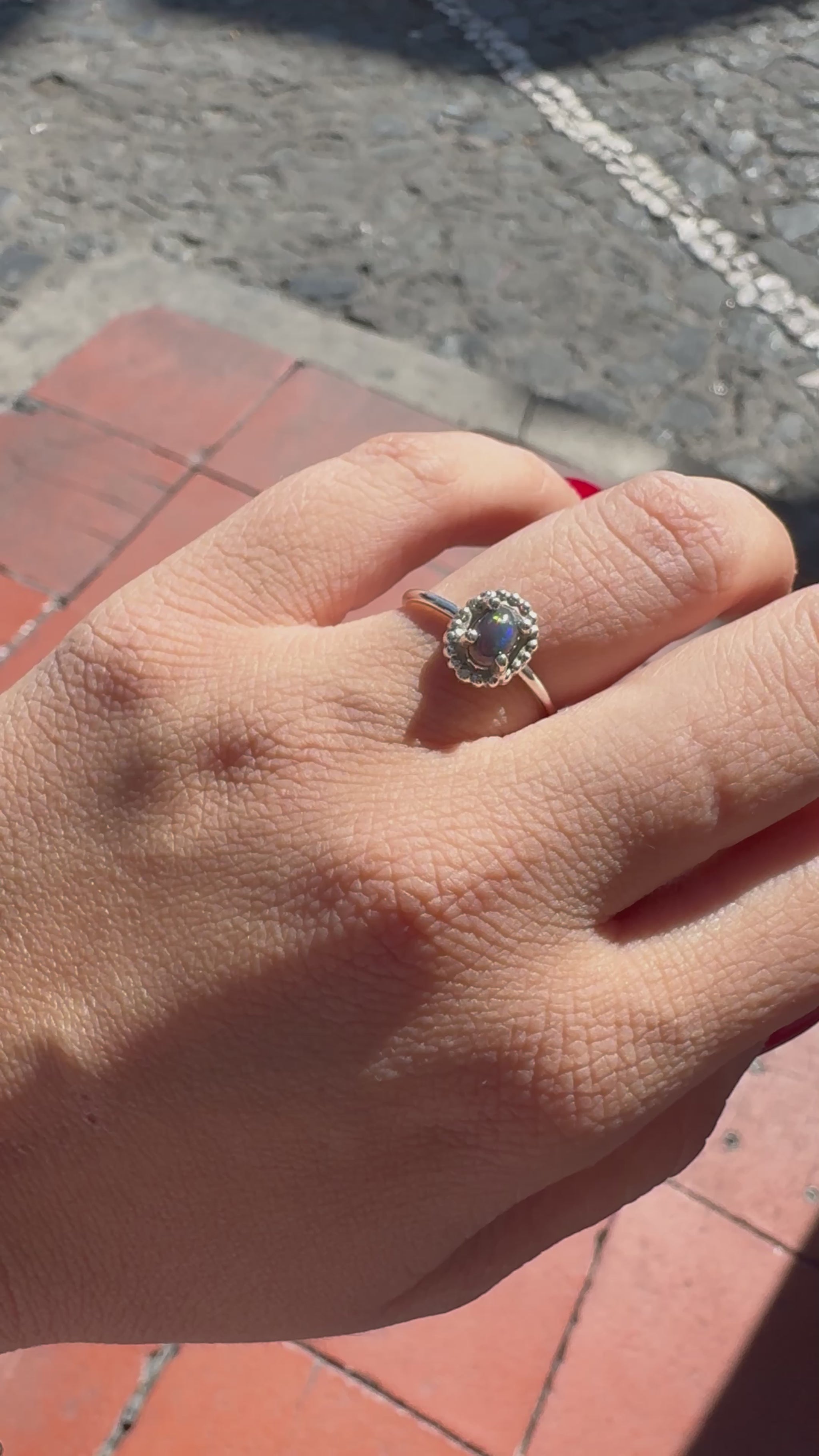 Anillo Ópalo Negro Flor en Plata .925 💎