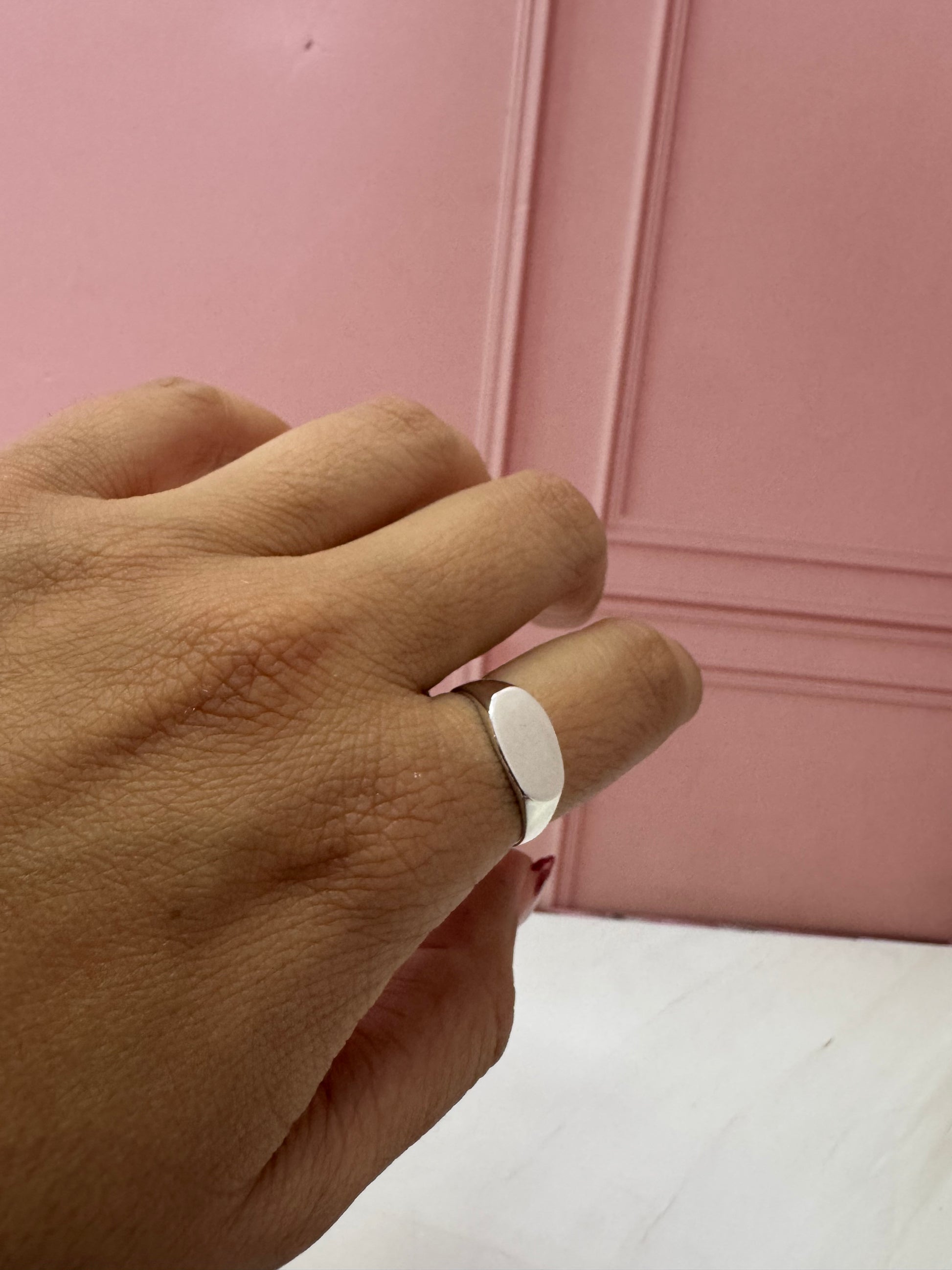 Un anillo chunky con placa ovalada perfecta para personalizar. En plata .925, representa identidad elegante, tradición moderna y la posibilidad de crear tu sello personal con forma orgánica.