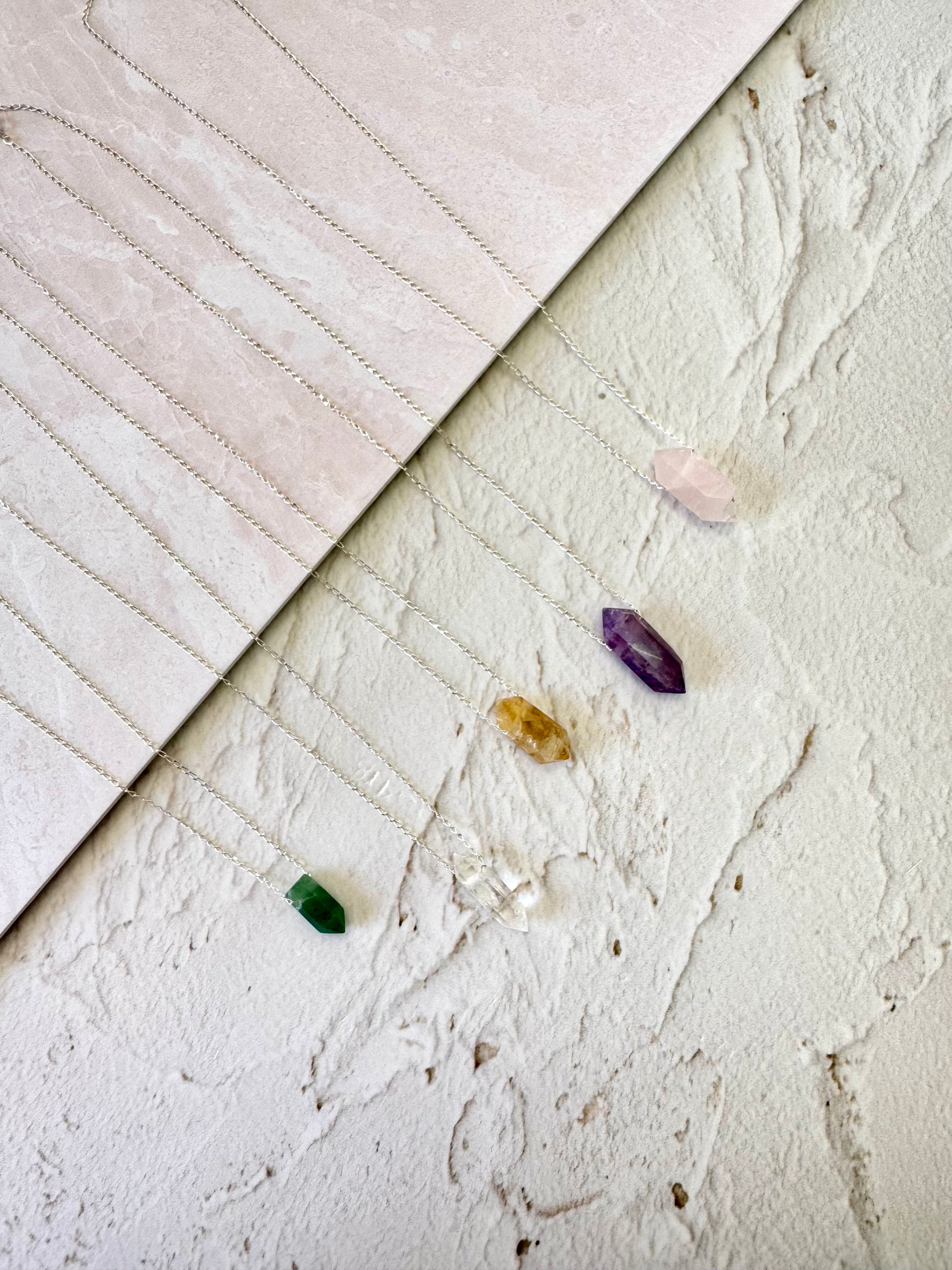 Cada collar es verdaderamente único con su punta de cuarzo natural. Es perfecto para quienes buscan energía amplificada, claridad mental y conexión con cristales naturales.