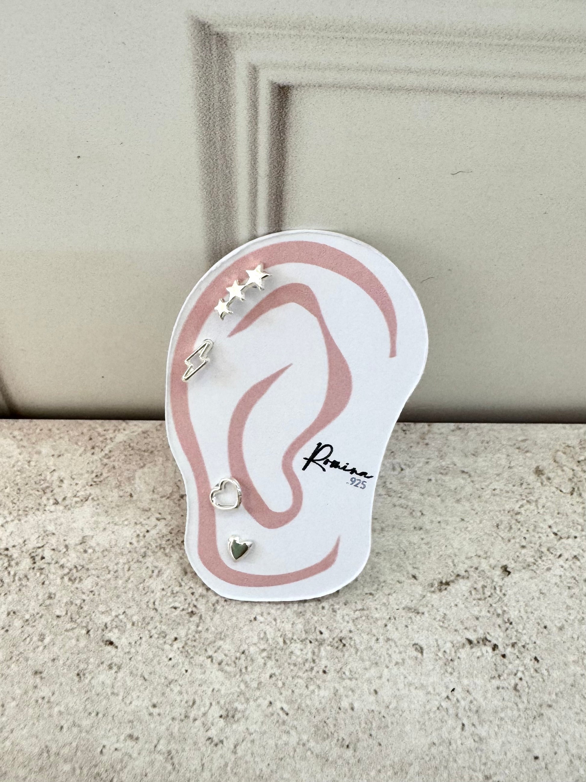 Un set romántico de aretes con diseño de elementos espaciales y corazones. Perfecto para quienes buscan amor infinito con magia del universo.