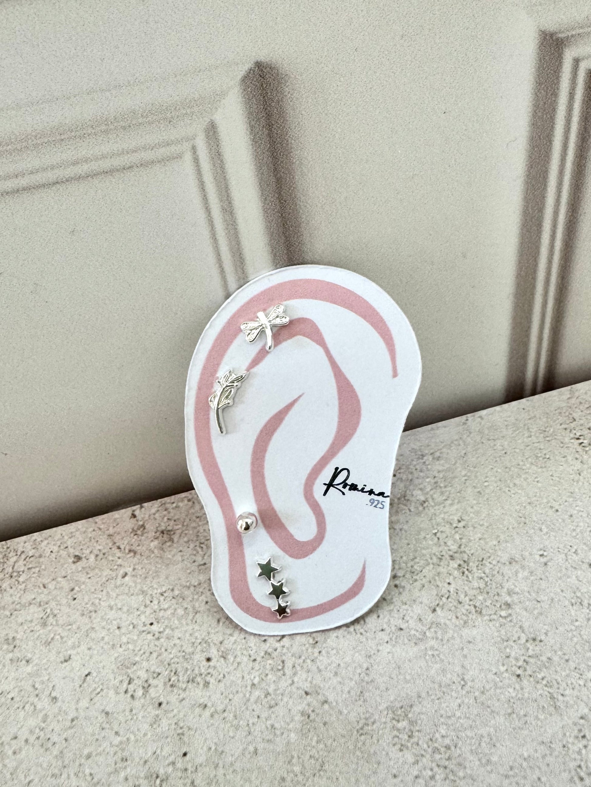 Un set mágico de aretes con diseño de estrellas y libélula. Perfecto para quienes buscan transformación con sueños estelares.