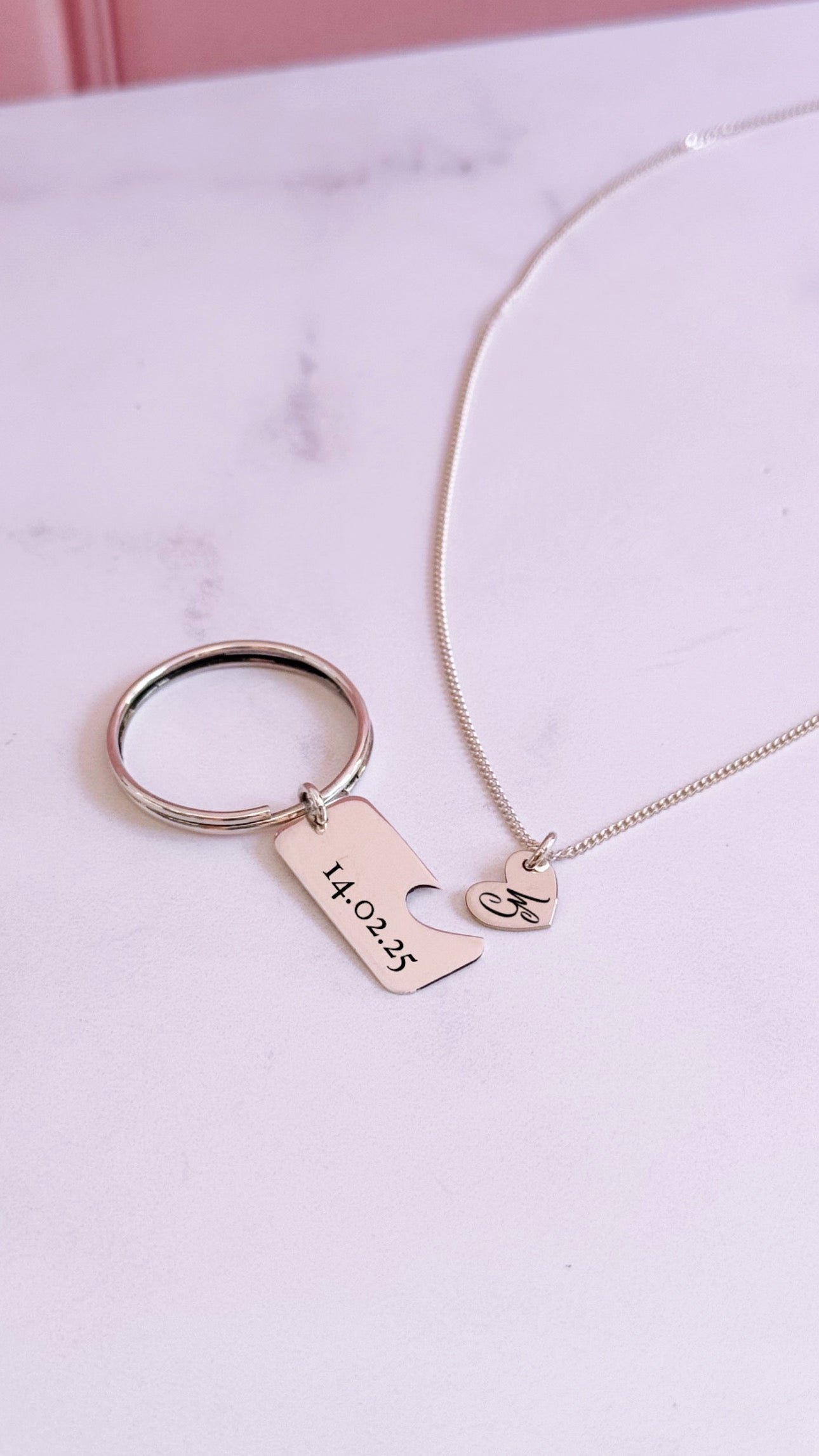 Un set único con llavero y collar personalizables. Perfecto para quienes buscan un regalo coordinado y significativo.