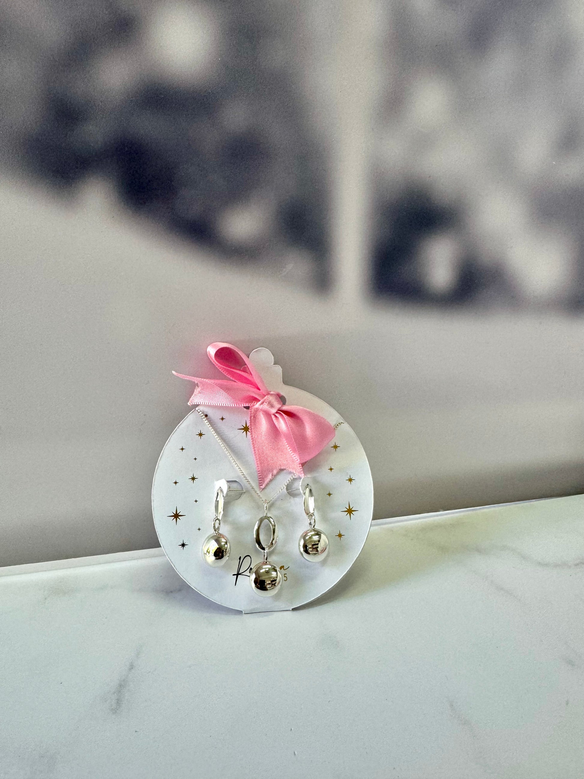 Un set completo y coordinado con aretes, cadena y dije en diseño de luneta lisa. Perfecto para quienes buscan un look clásico elegante con piezas que combinan a la perfección.