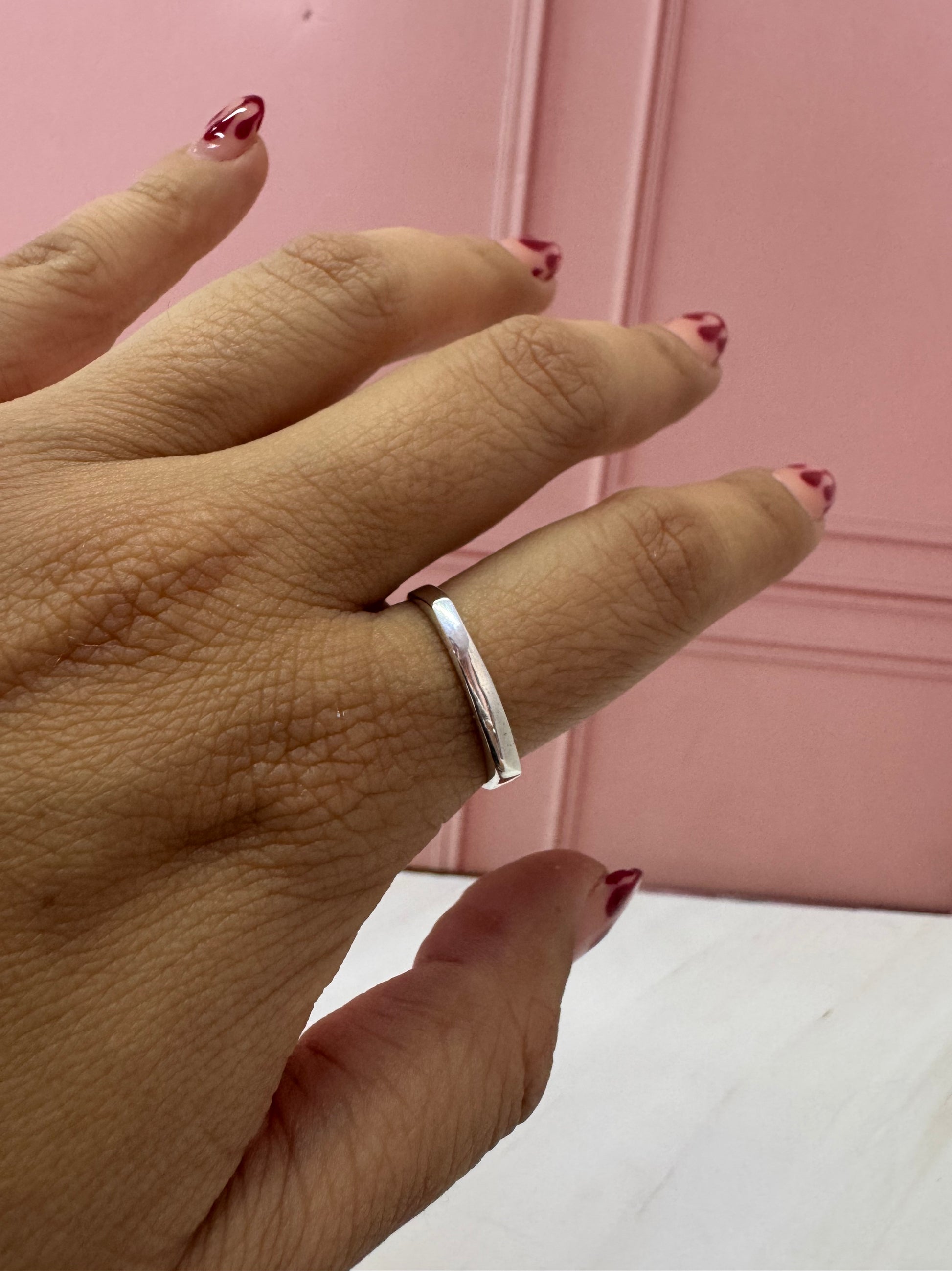 Un anillo chunky con placa cuadrada lisa y minimalista. En plata .925, representa geometría pura, equilibrio perfecto y la belleza de las formas simples con presencia audaz.