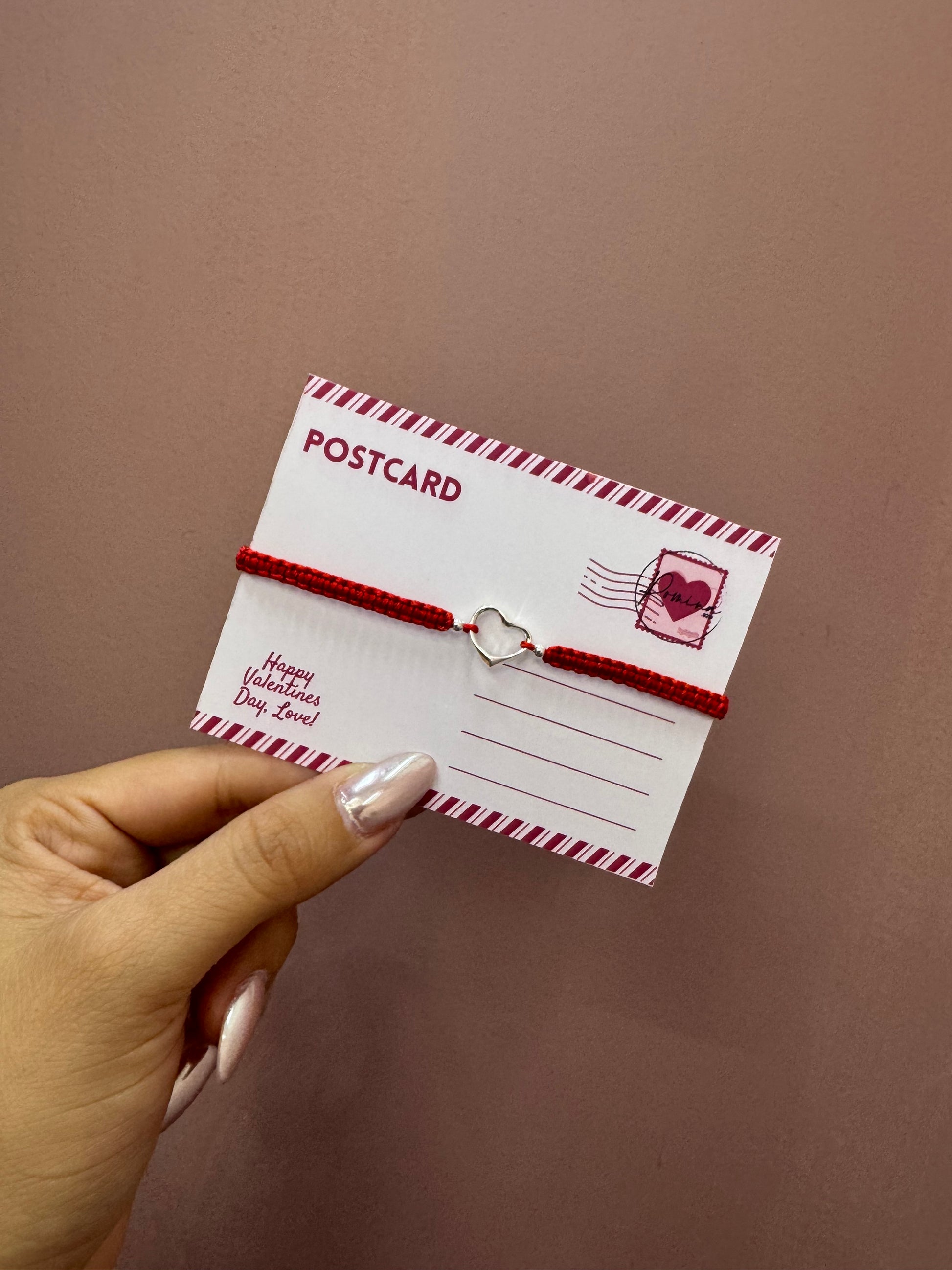Una pulsera romántica tejida en hilo chino con dije de corazón en plata .925. Perfecta para quienes buscan amor y afecto con diseño artesanal.