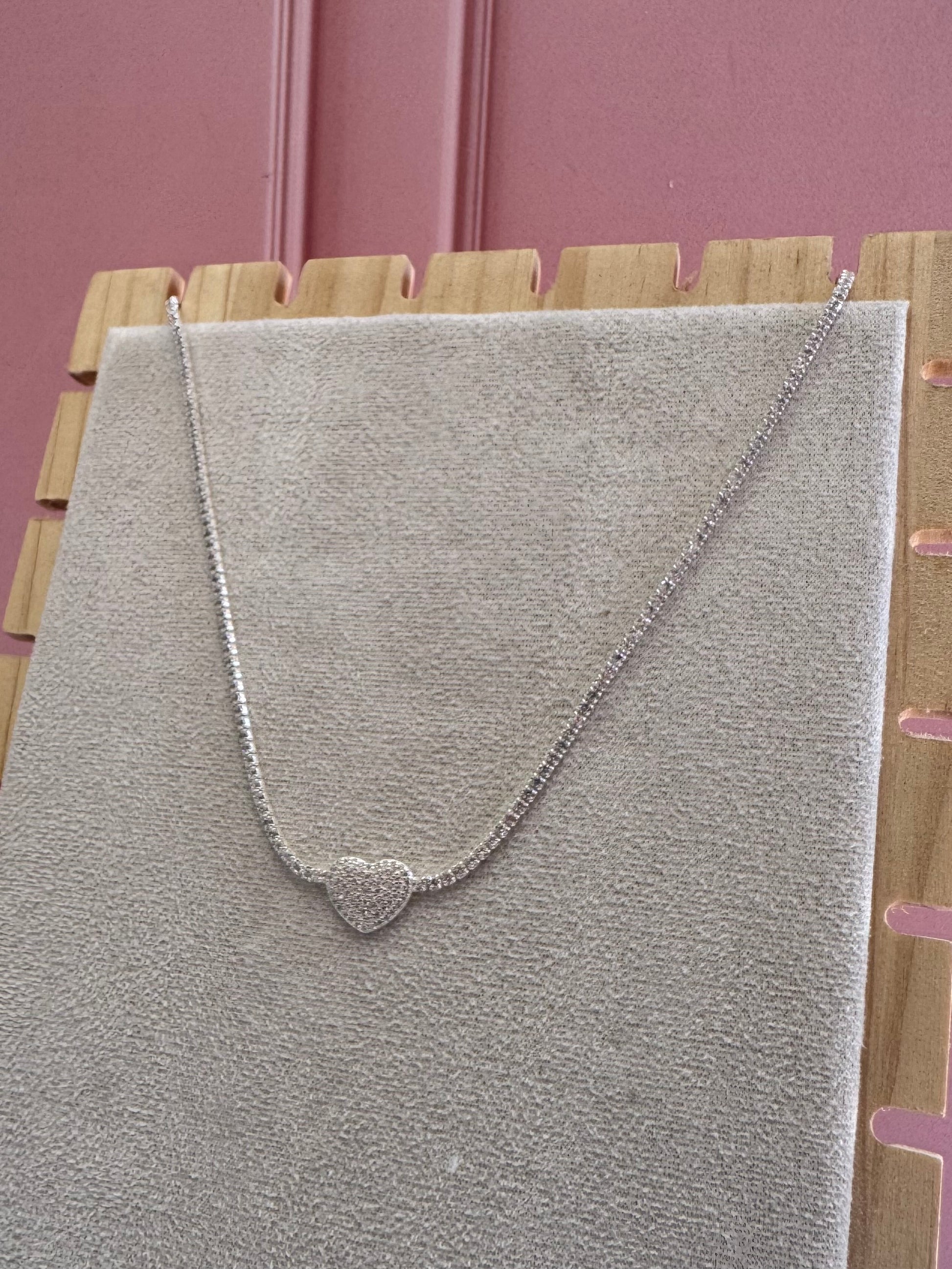 Un collar de alta joyería que combina el estilo tenis con un corazón romántico. En plata .925 con zirconias blancas brillantes, representa amor elegante, sofisticación y brillo eterno.