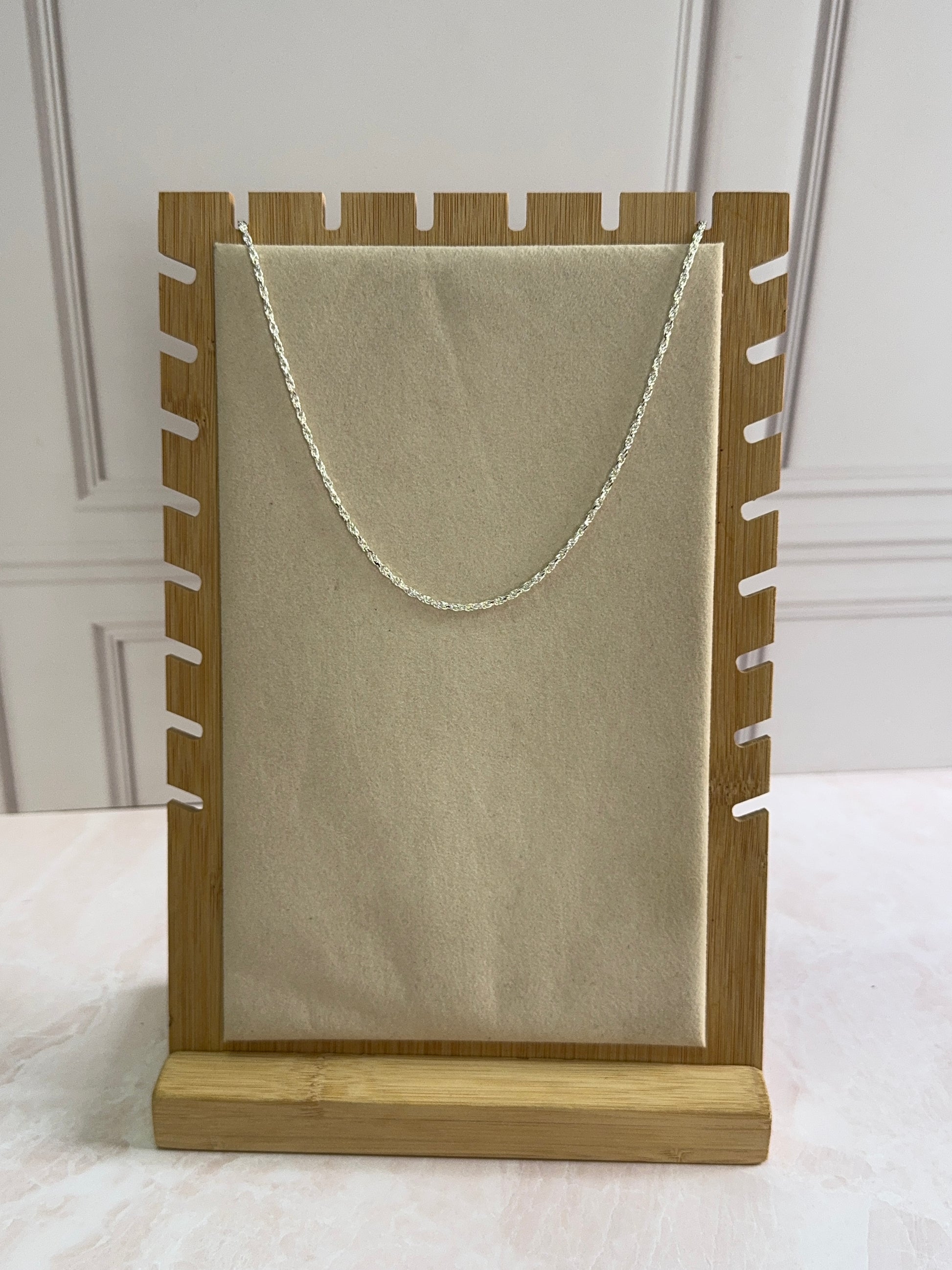 Una cadena elegante con patrón torzal en tamaño mediano que crea un efecto sofisticado. Perfecta para quienes buscan elegancia con presencia.