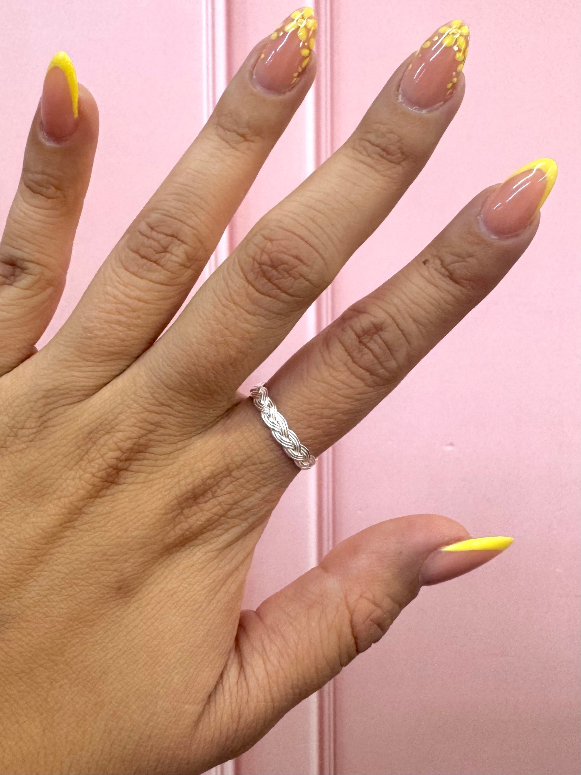 Un anillo elegante con diseño trenzado que simboliza unión y conexión. Perfecto para quienes buscan un símbolo de lazos fuertes.