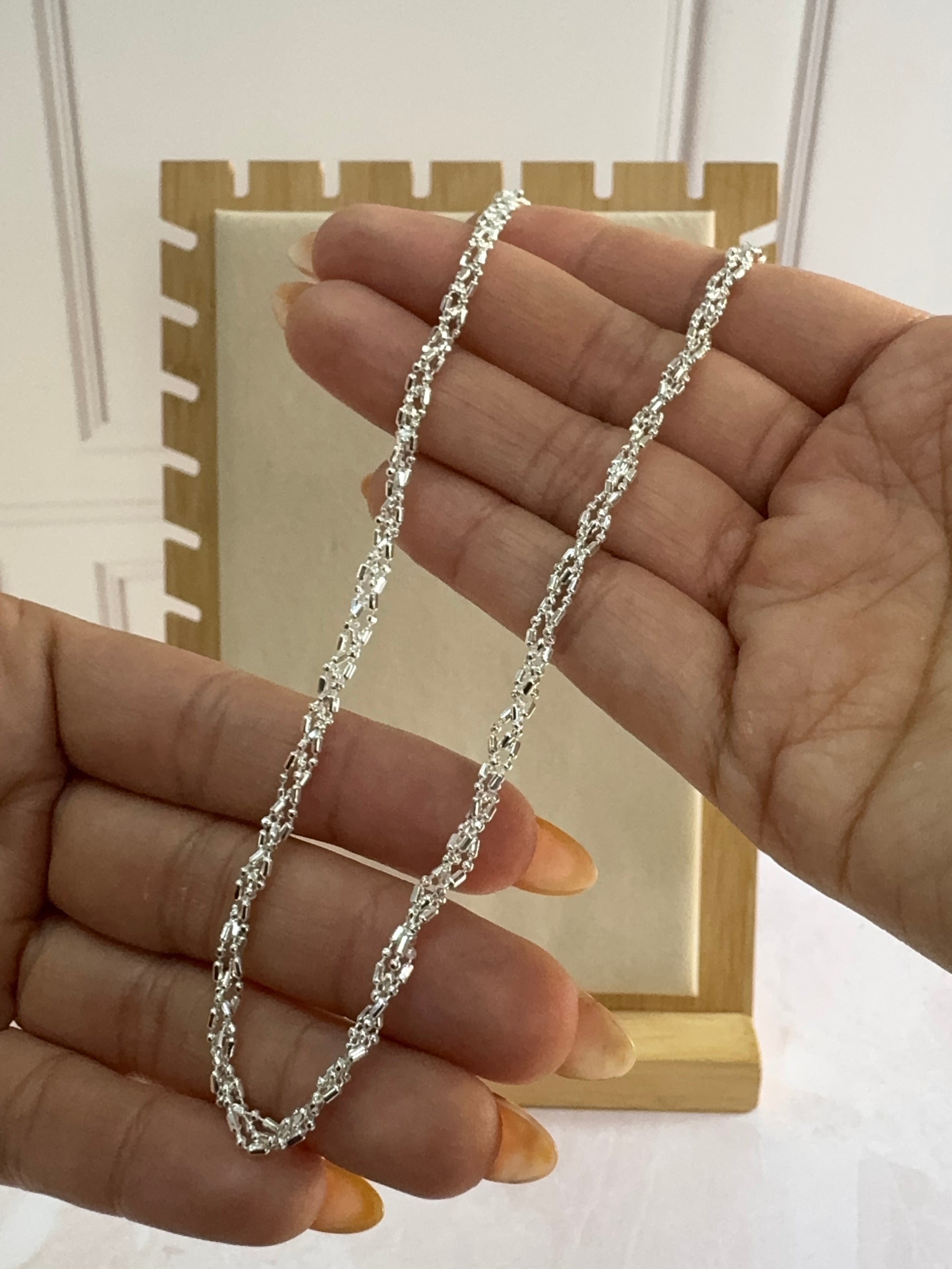 Un collar elegante con triple patrón punto y coma que crea un efecto sofisticado. Perfecto para quienes buscan un estilo clásico statement.