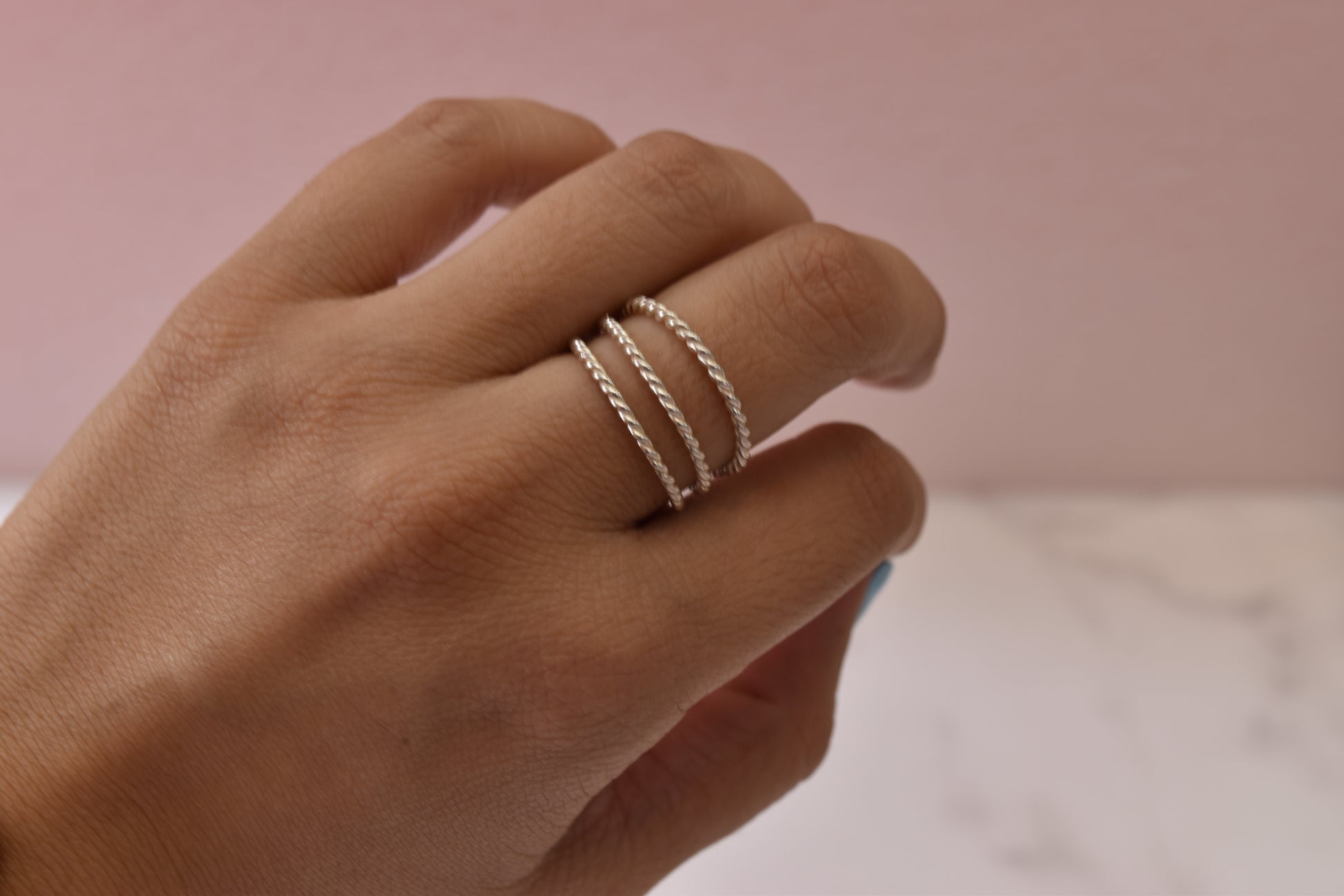 Un anillo elegante con diseño de triple banda torzal unida. Perfecto para quienes buscan textura con presencia.