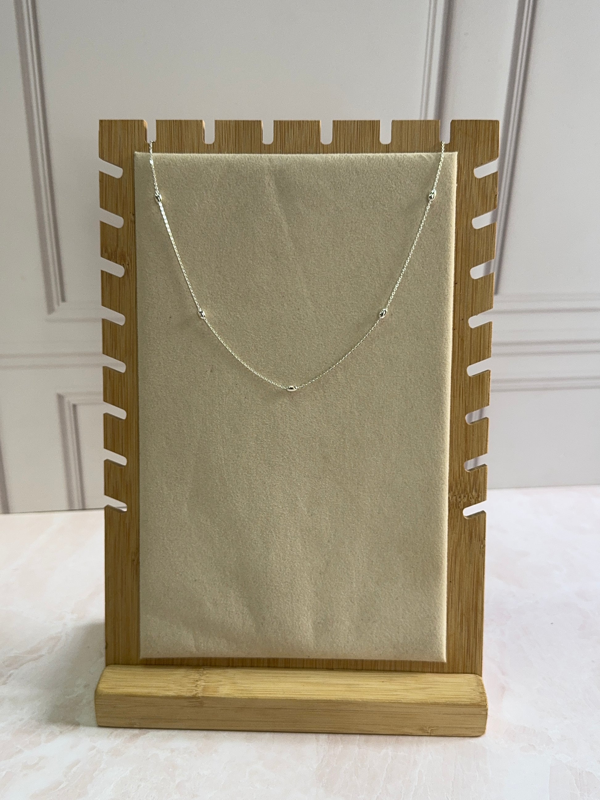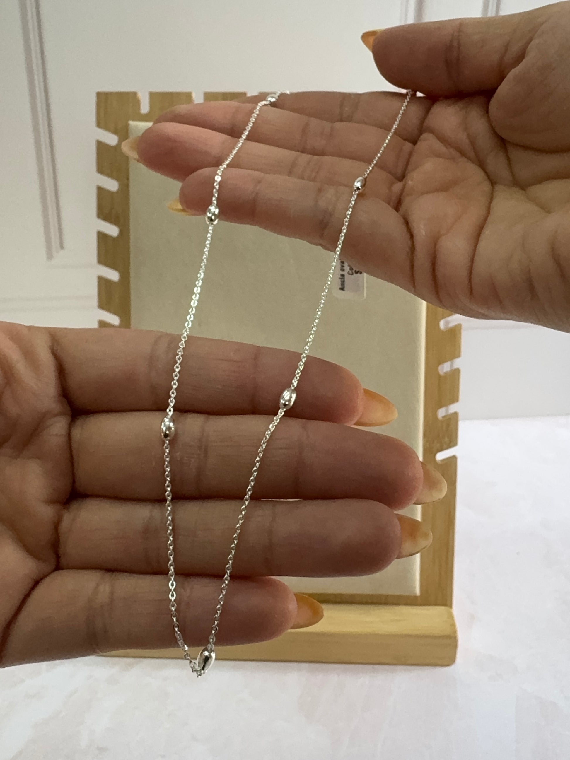 Una cadena elegante con bolitas ovaladas que crea un efecto sofisticado y versátil. Perfecta para uso diario o con tu dije favorito.